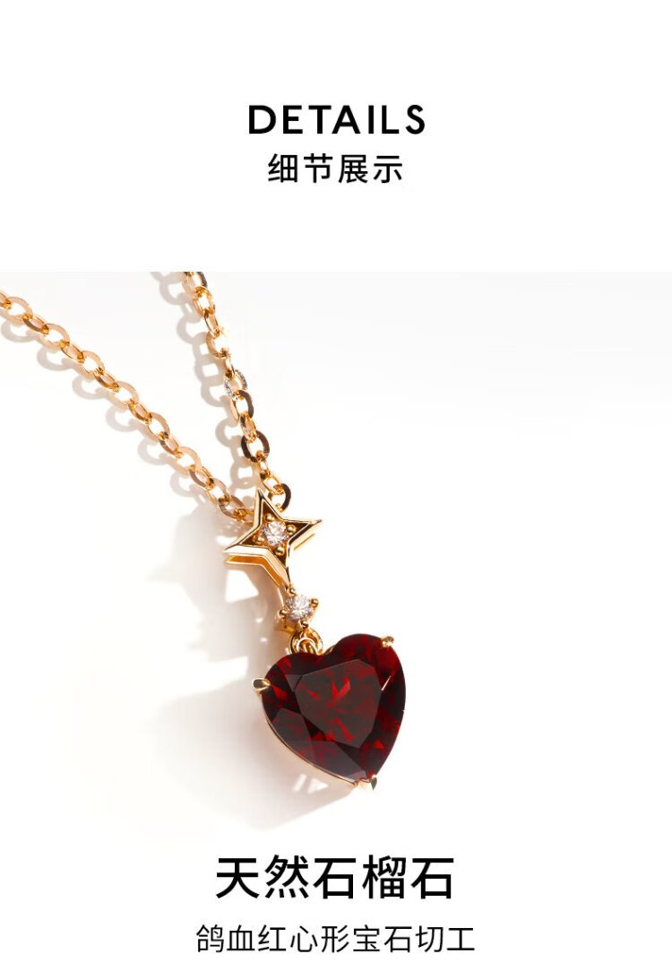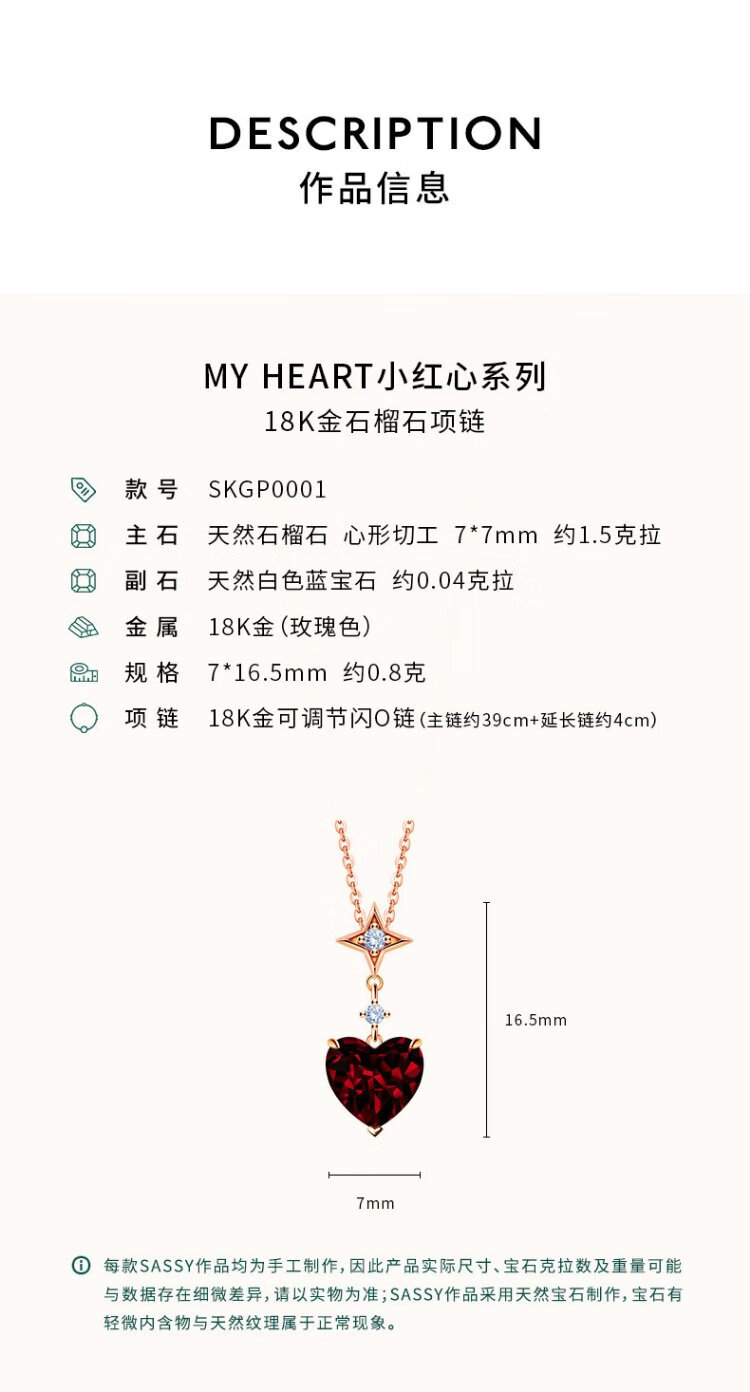 SASSY small red heart 18K gold pigeon blood red garnet necklace female gemstone pendant fashion jewelry birthday gift for girlfriend