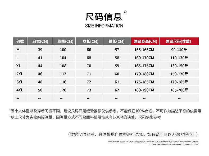 China (cm) 165 / 88-90 170 / 96-98 175 / 108-110 180 / 118-122 185 / 126-130