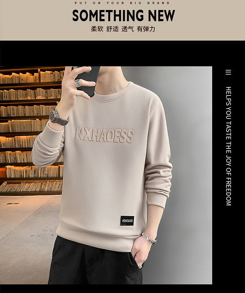 Xiaofu men's sweatshirt hoodless spring and autumn 2026 new round neck bottoming shirt top trendy brand versatile casual long-sleeved T-shirt