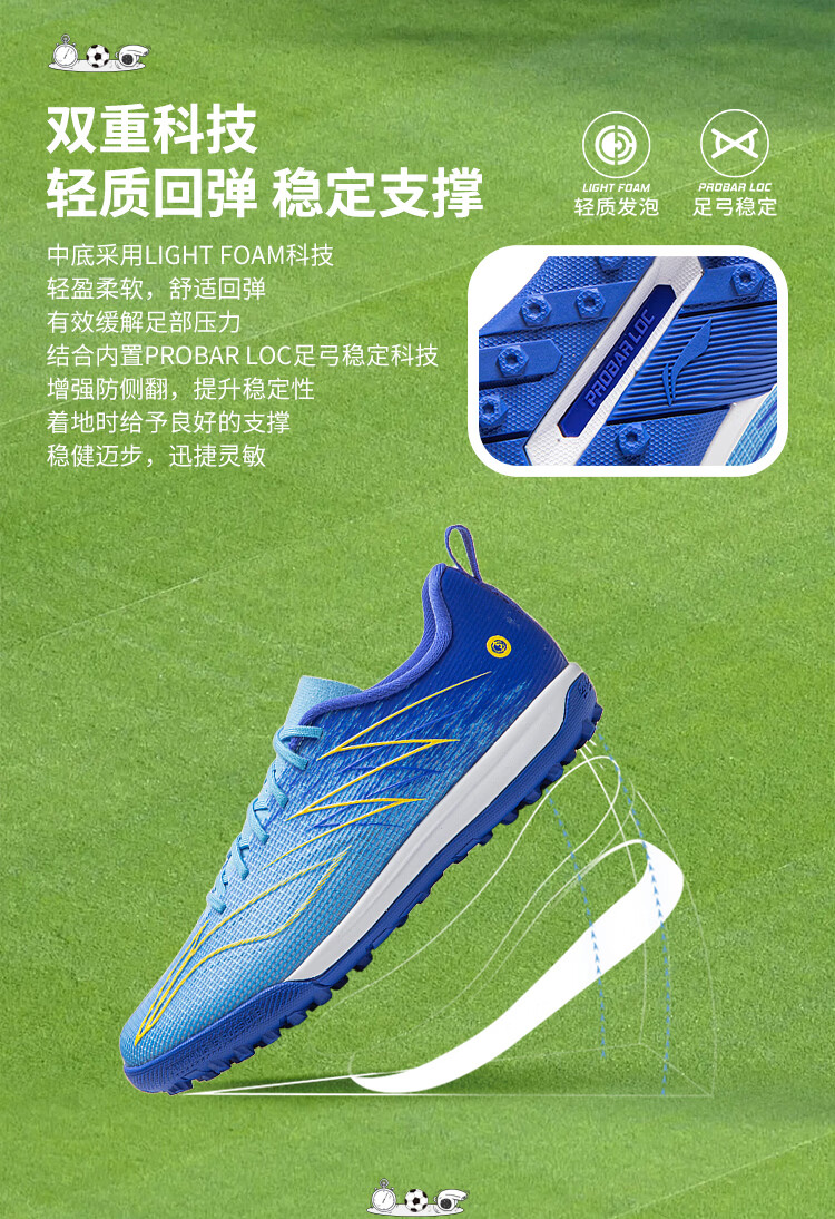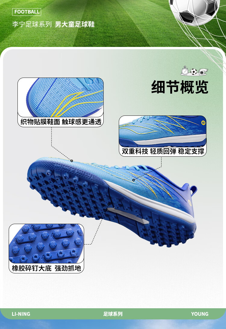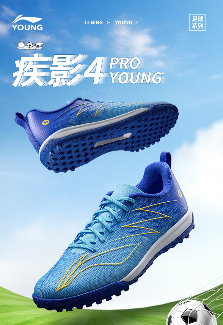 Li Ning (LI-NING) Quick Shadow 4 children's football shoes for boys and girls support stable rebound professional game training shoes 34YKGW050-1