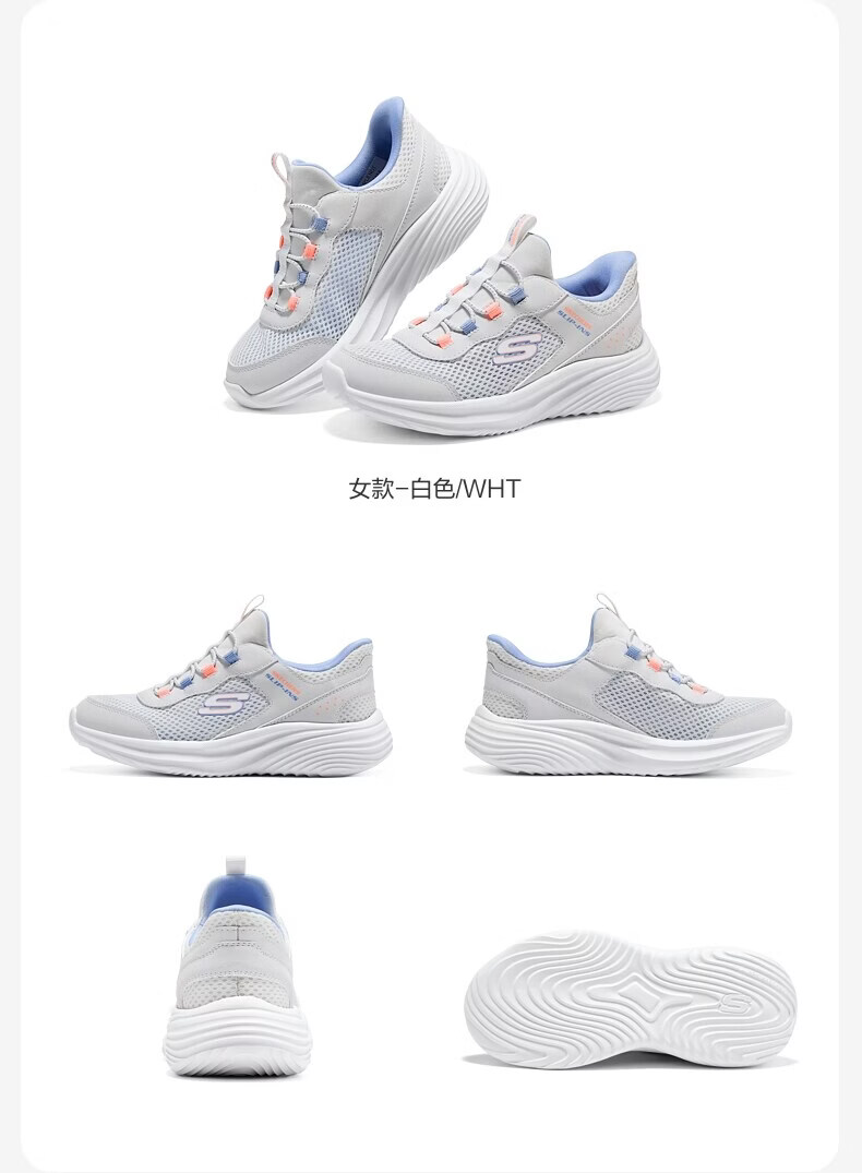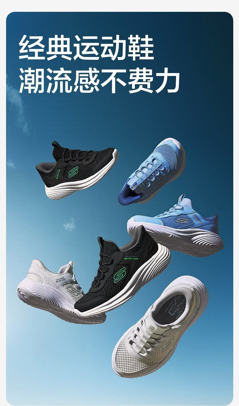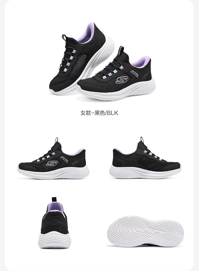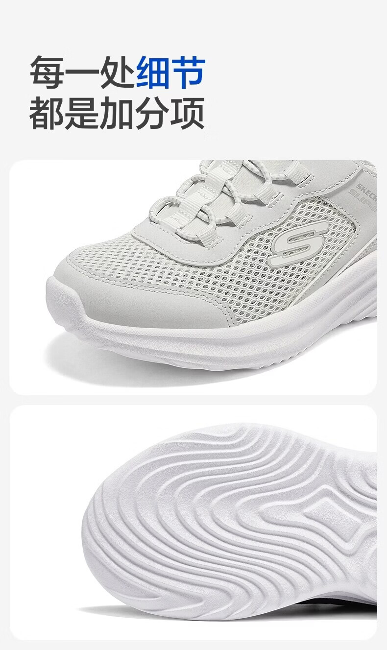 Skechers Skechers children's flash-through sneakers spring new children's shoes big children's lightweight and breathable running shoes 405366L