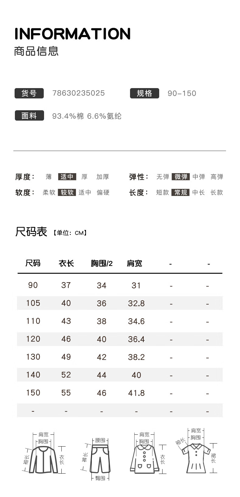 China (cm) 160-165/84-86 165-170 / 88-90 167-172 / 92-96 168-173 / 98-102 170-176 / 106-110