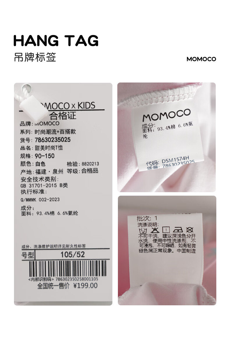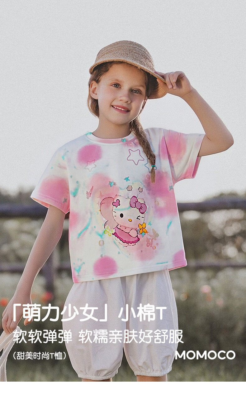 Mami Maca (MOMOCO) children's T-shirt summer girls short-sleeved sweet fashion T-shirt white 105