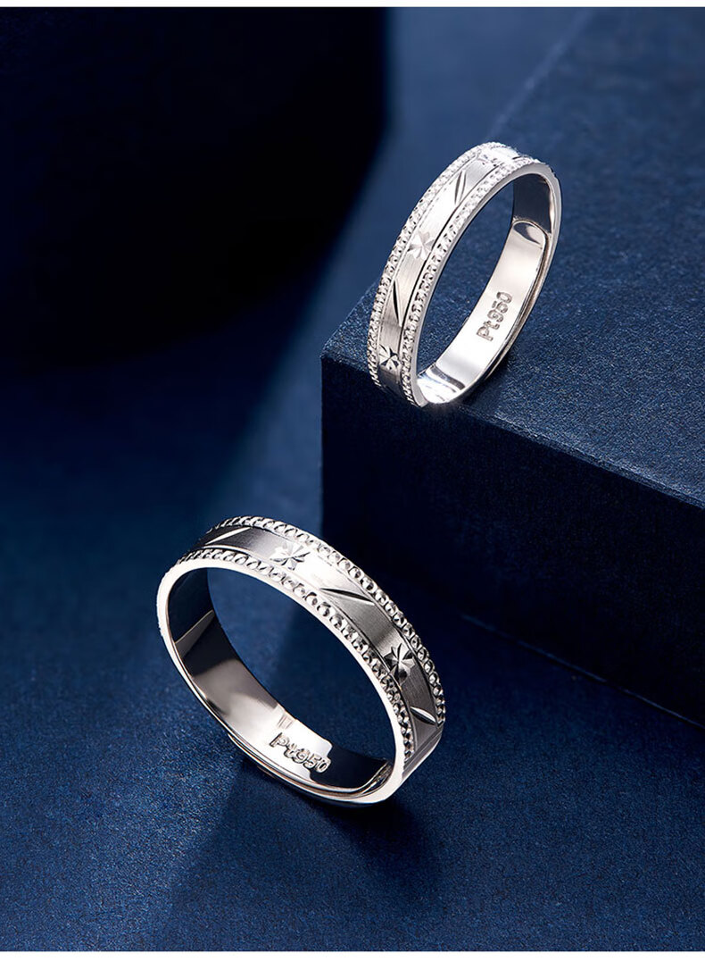 Pt.Charm couple ring wedding ring pt950 platinum ring men's and women's engagement ring platinum ring Valentine's Day gift live female ring 3.2-3.3 grams in stock