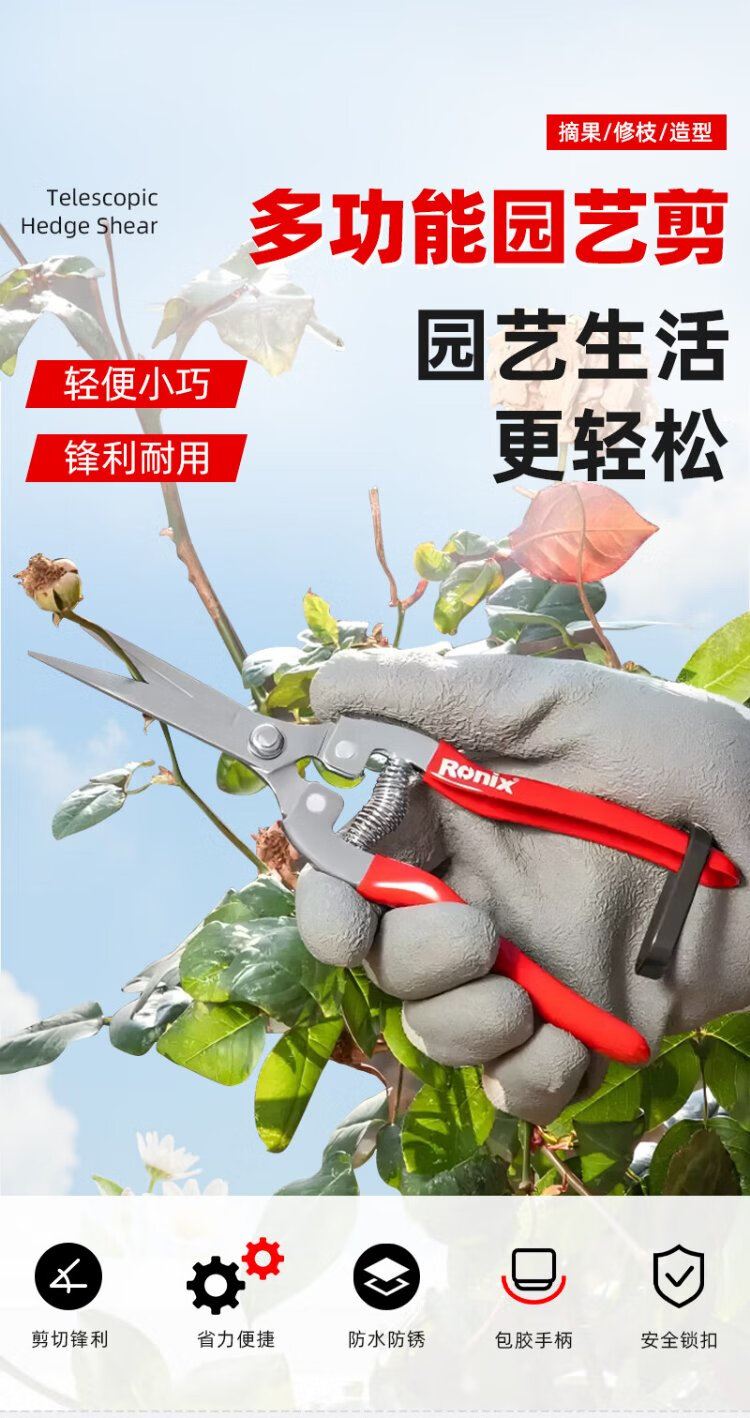 Ronix German gardening shears, fruit tree pruning scissors, garden pruning branches, floral scissors, flower pruning labor-saving garden scissors