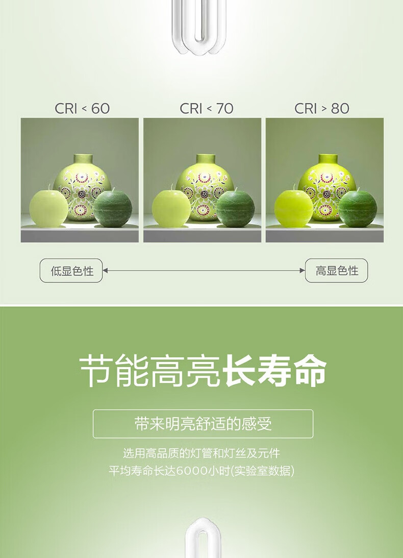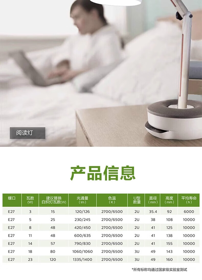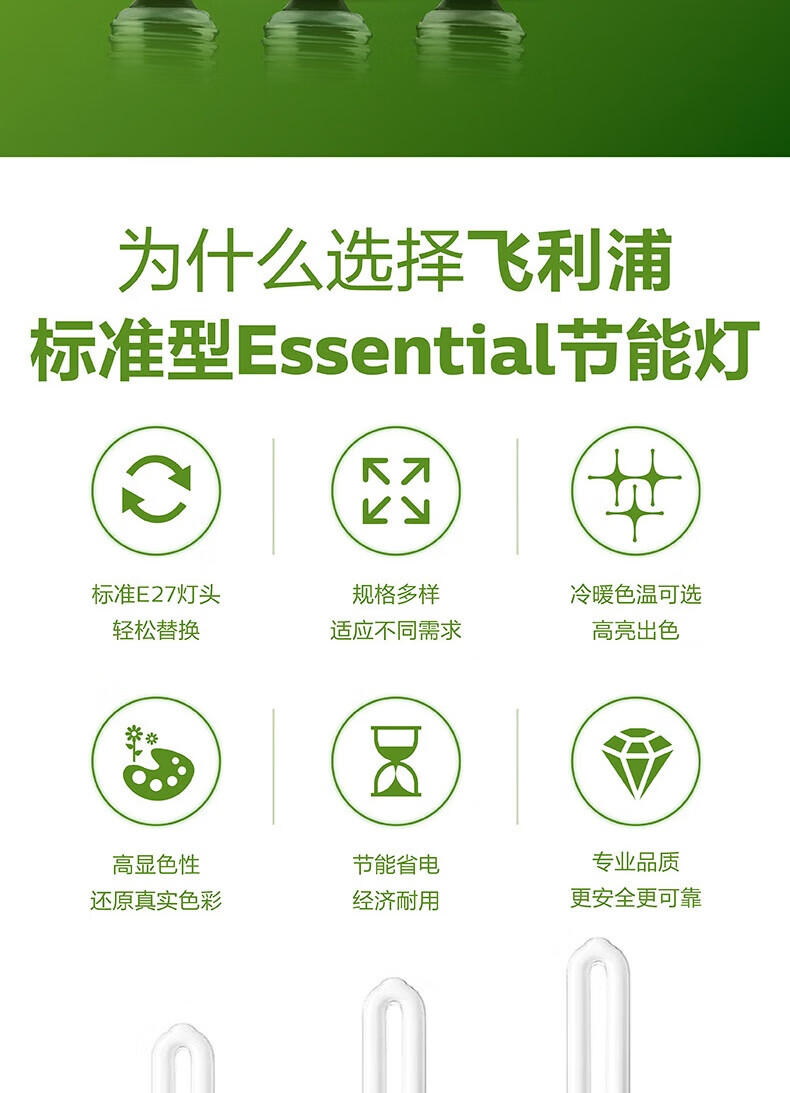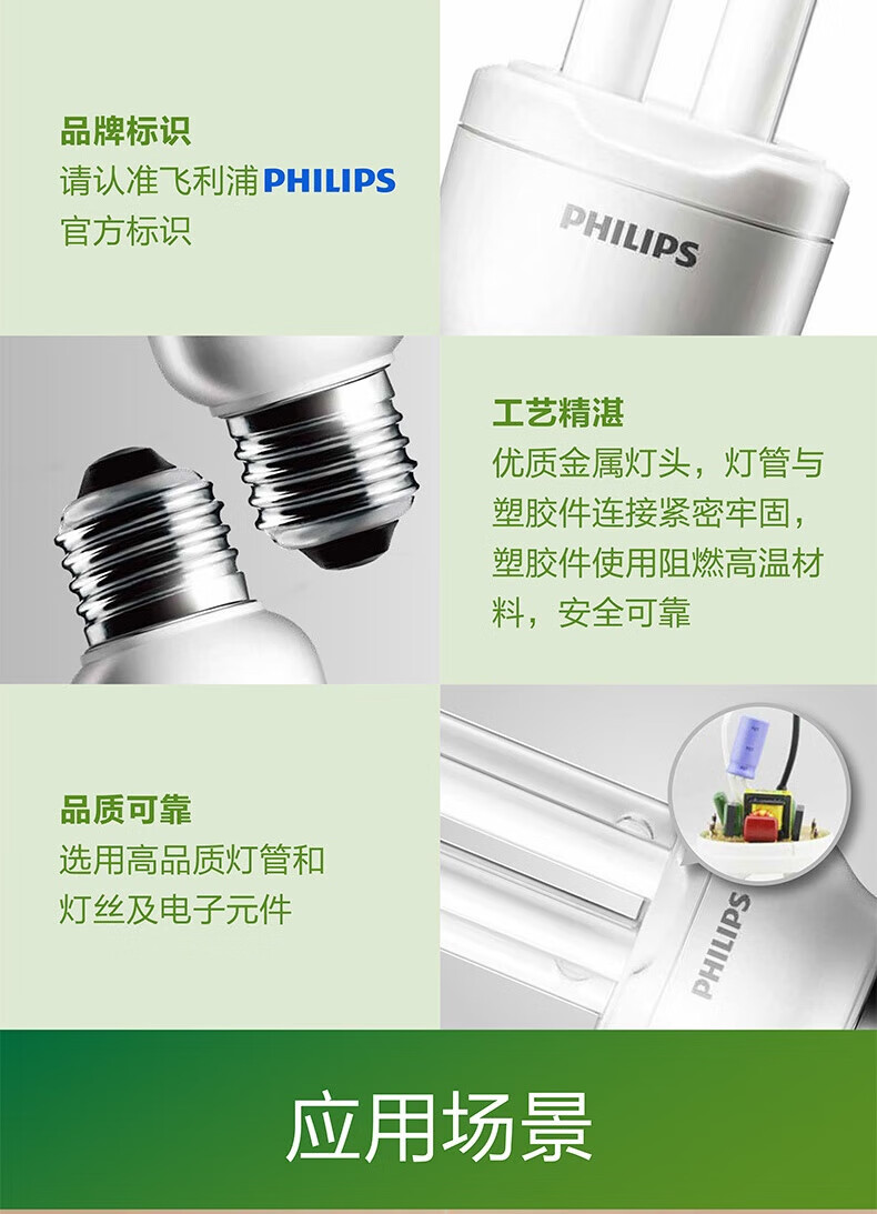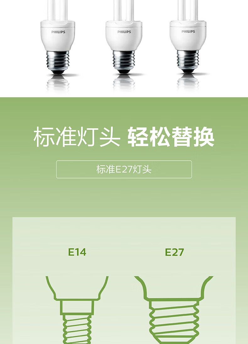 Philips (PHILIPS) 2U three-color energy-saving light bulb e27 large screw household energy-saving lamp U-shaped super bright fluorescent lamp 8w-white light 6500K