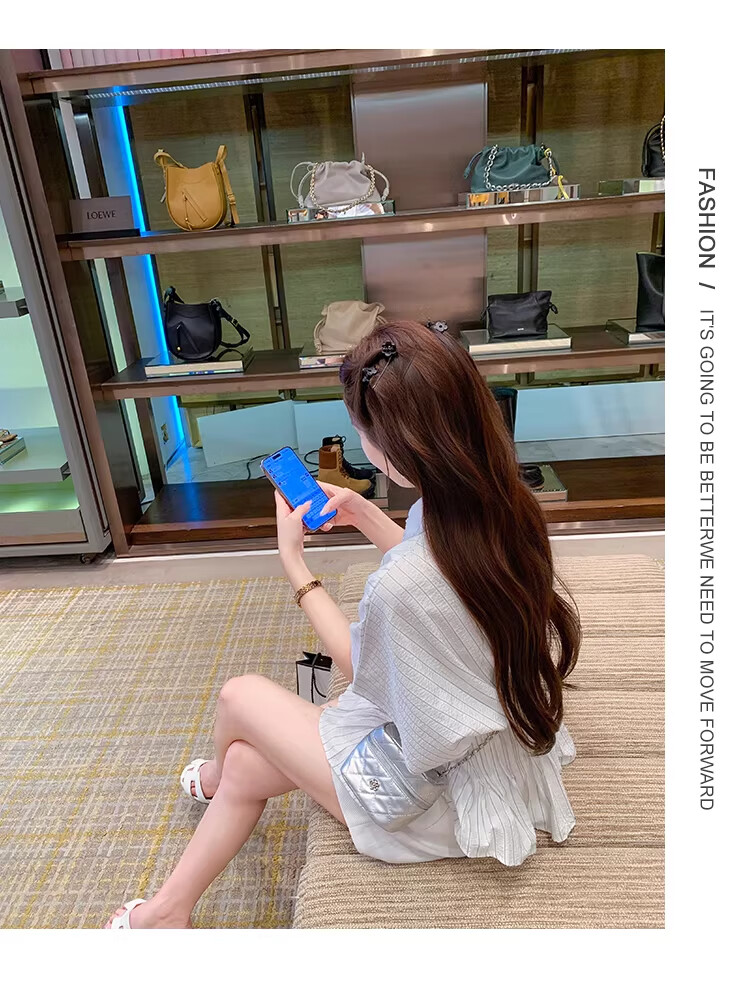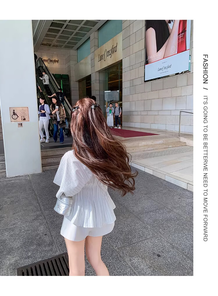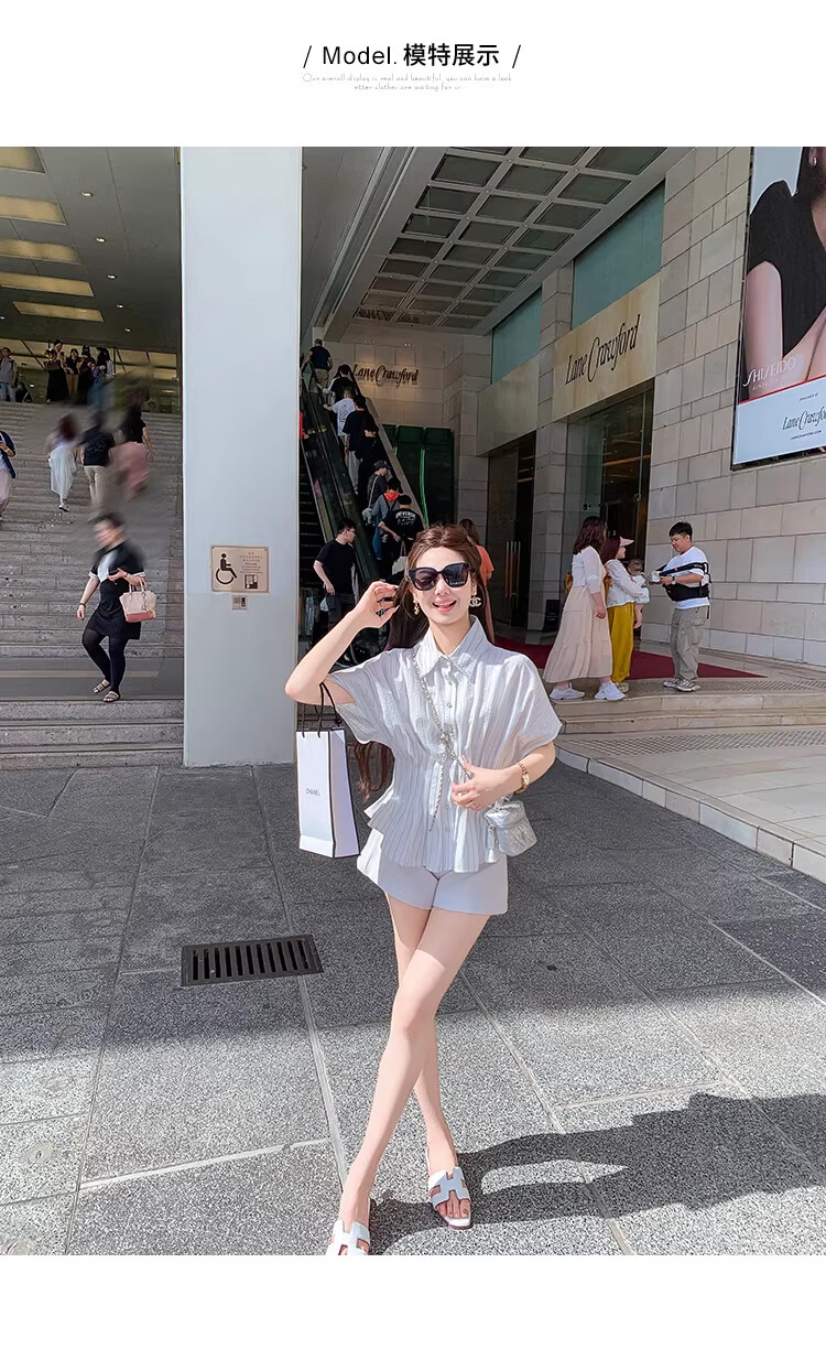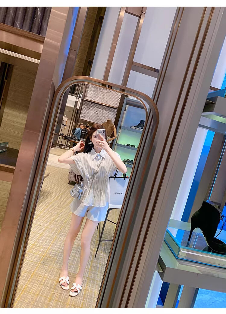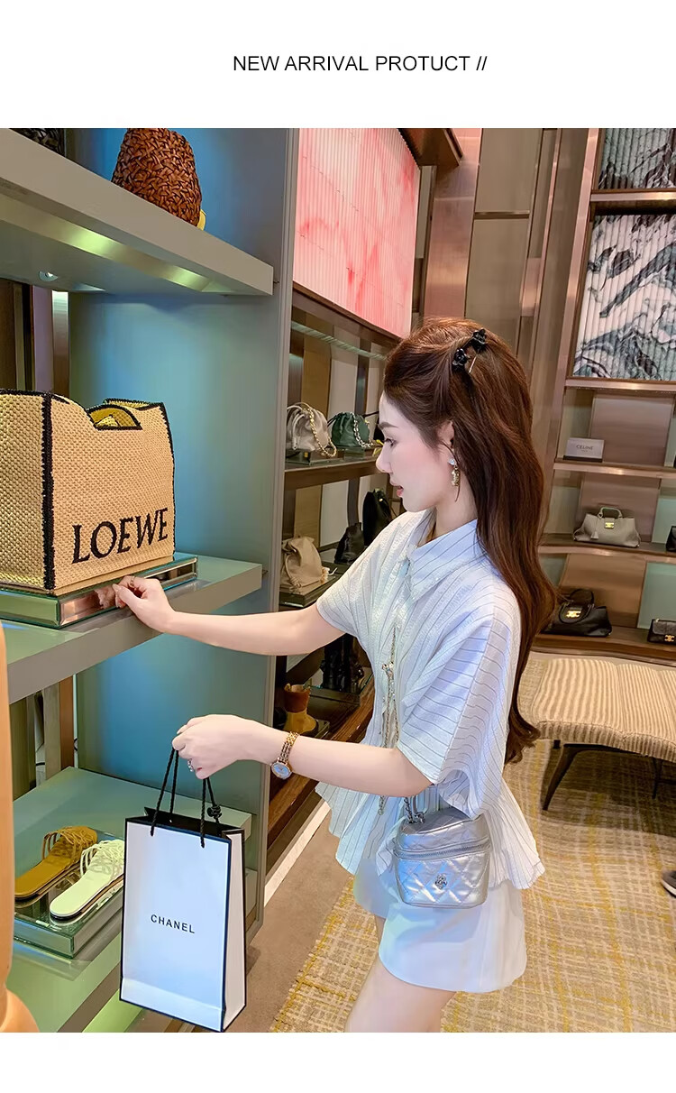 Fish Rabbit's rabbit waist slimming blue striped shirt women's design short-sleeved shirt temperament women's top blue M