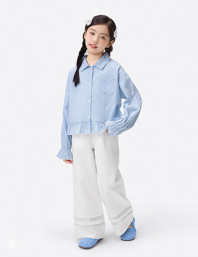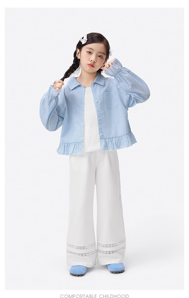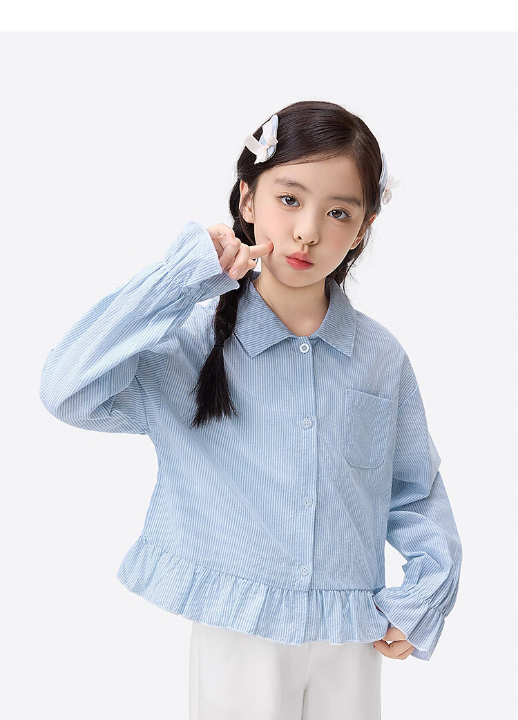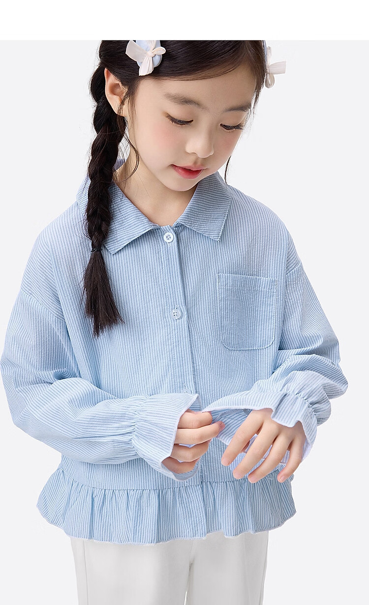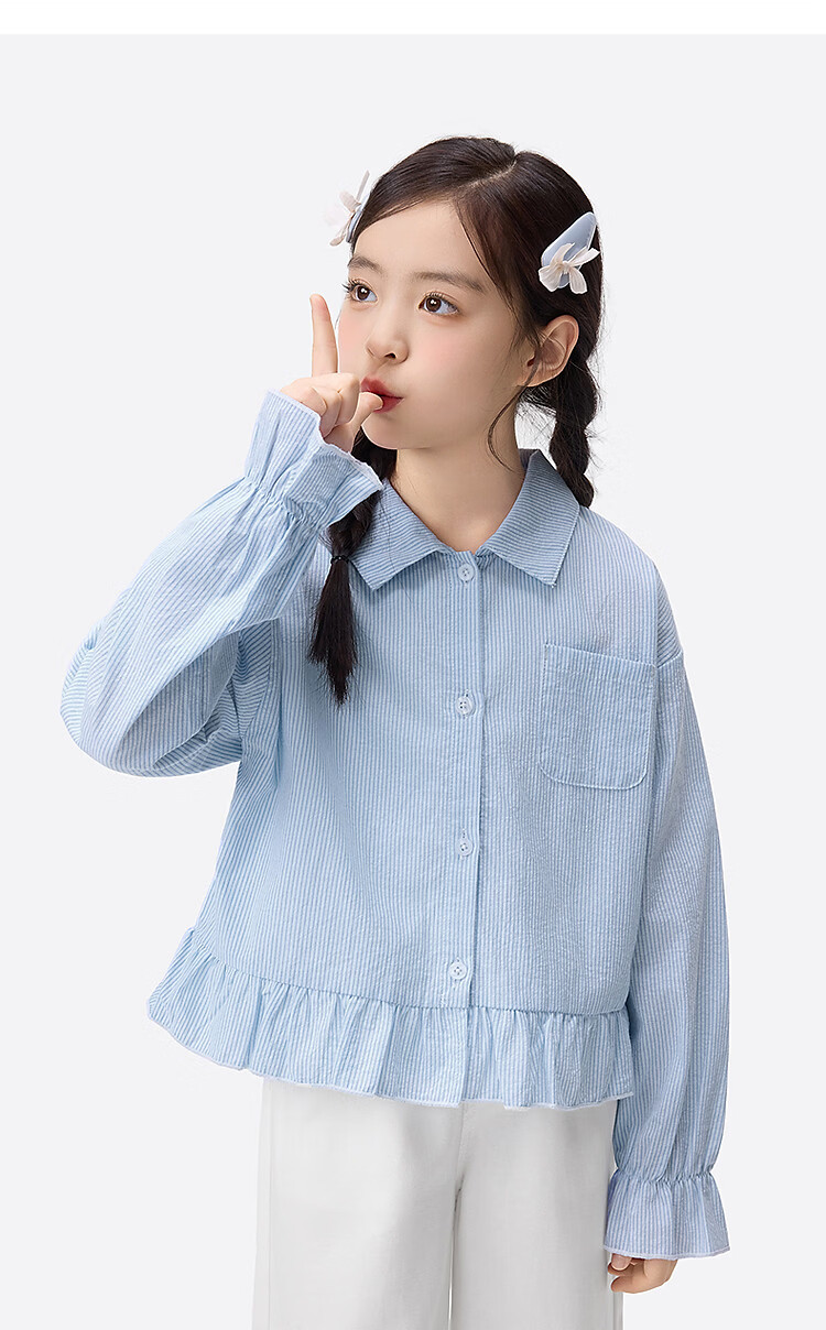 Xiaoyinman girls college style sub-shirt lace cuffs 26 spring dress western style medium and large children's casual shirt top jacket