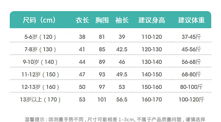 Size (cm) 42 44 46 48 50