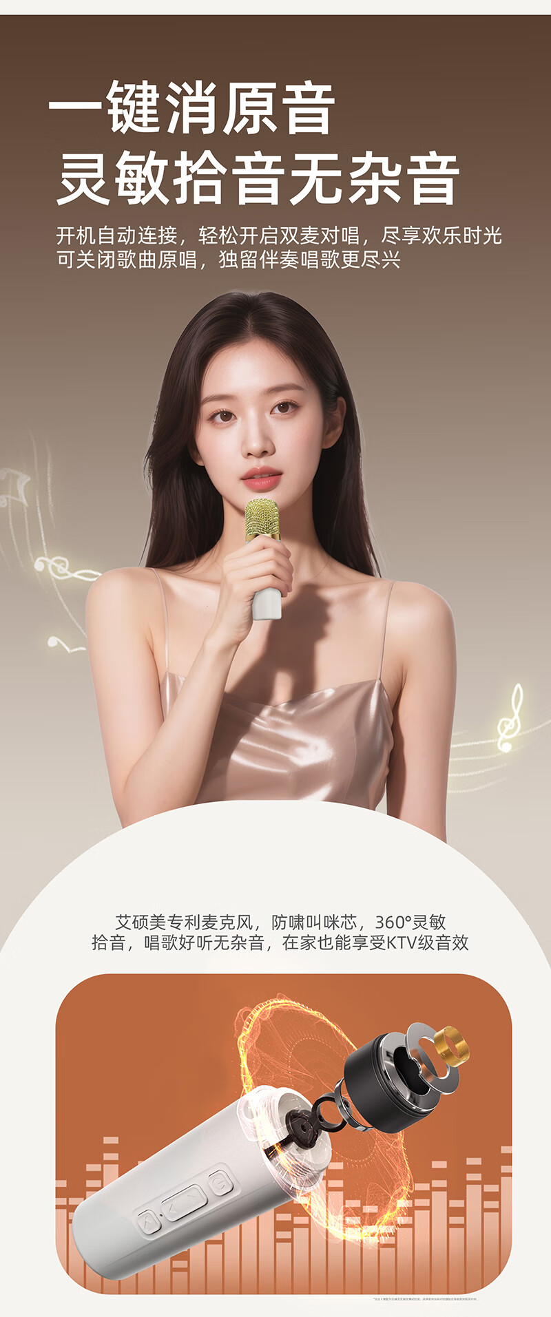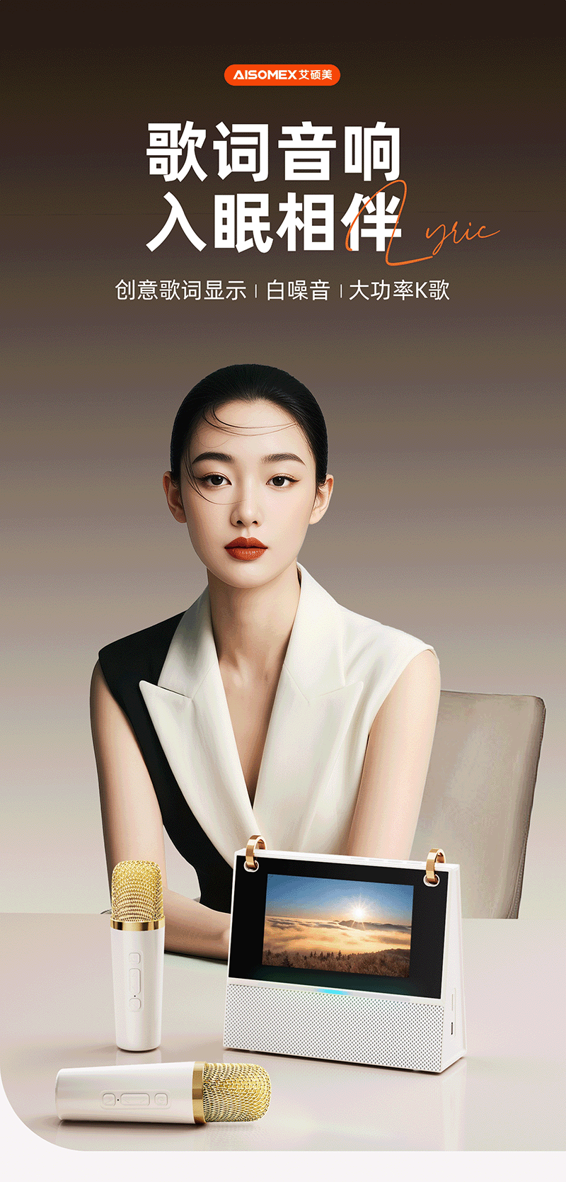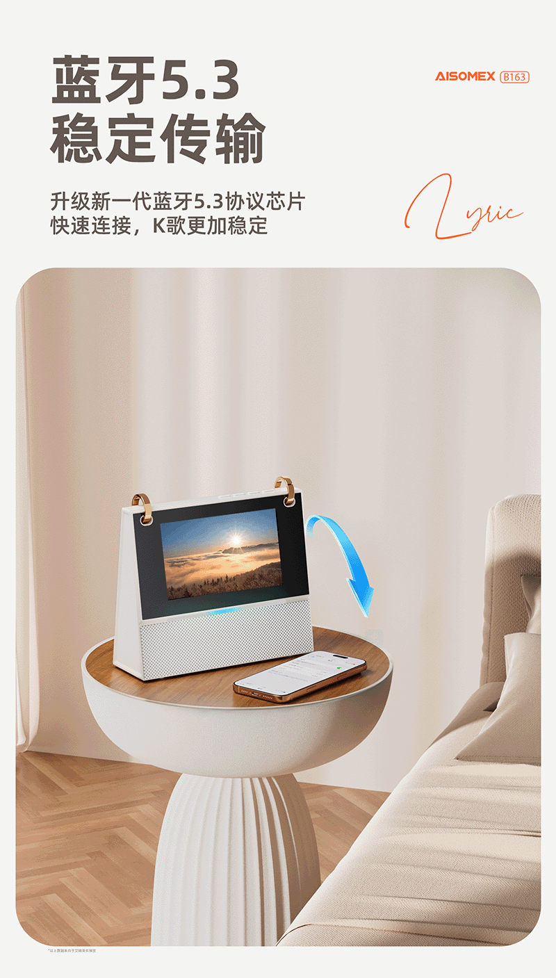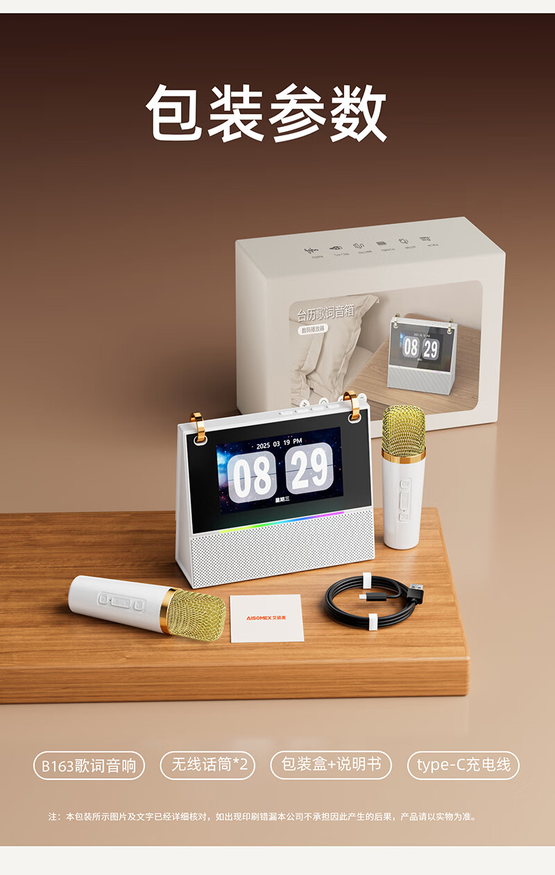 Aishomei B163k song microphone audio all-in-one singing artifact with microphone family ktv home laka ok children's male and female birthday gift lyrics display white double wheat
