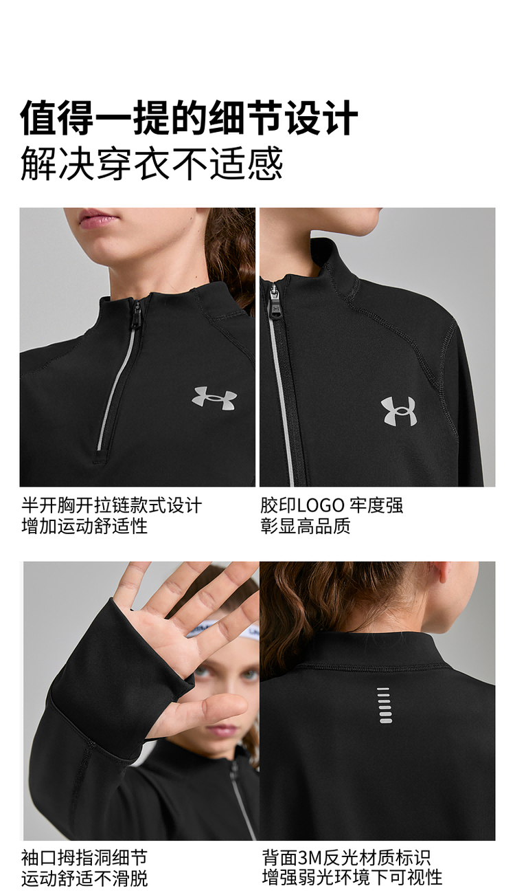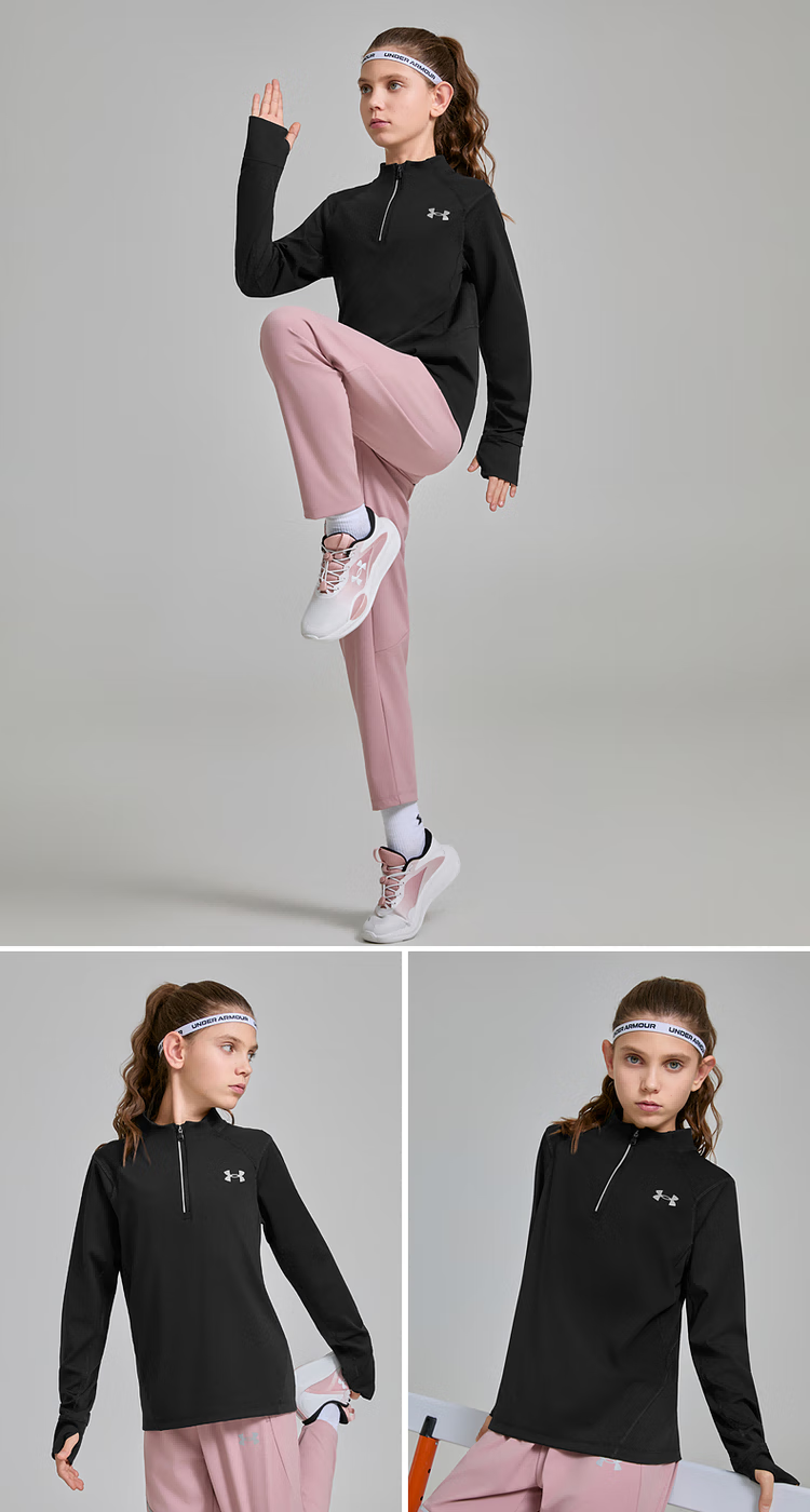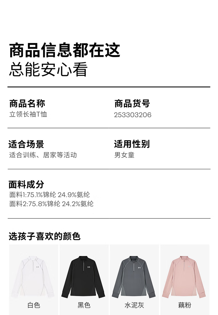 Under Armor children's long-sleeved T-shirt spring and autumn unisex running training casual sports stand-up collar long-sleeved T-shirt top 253303206