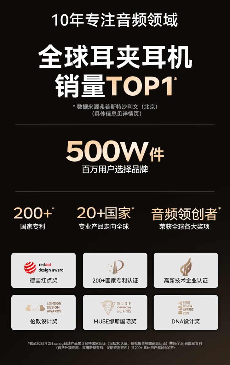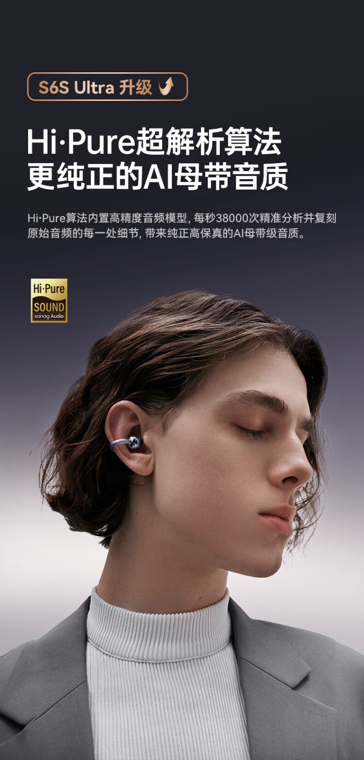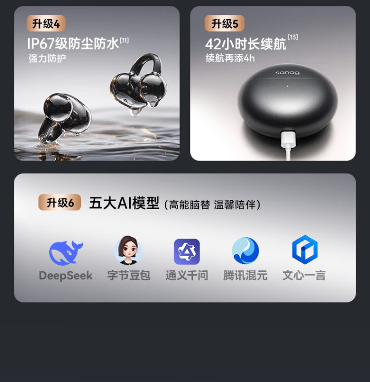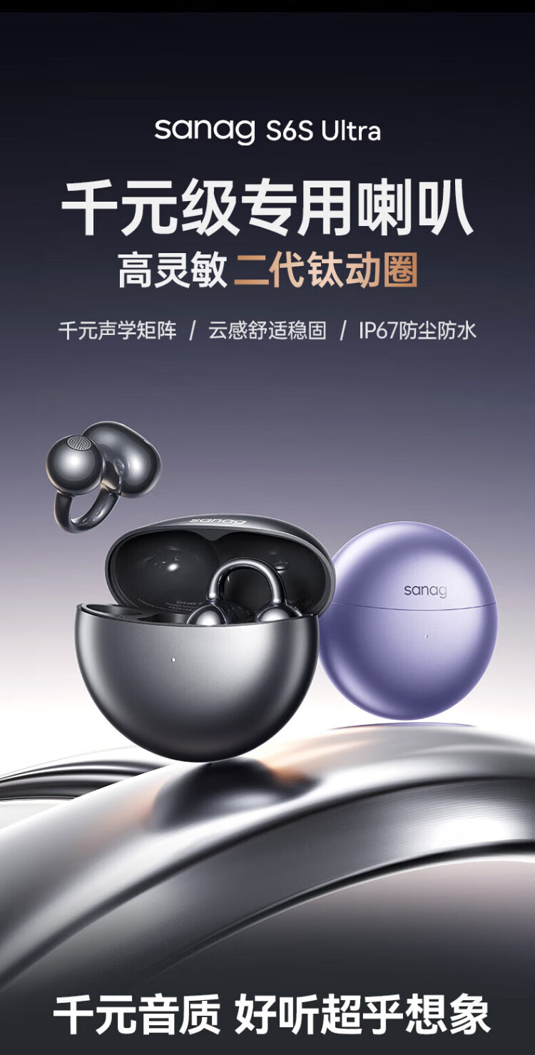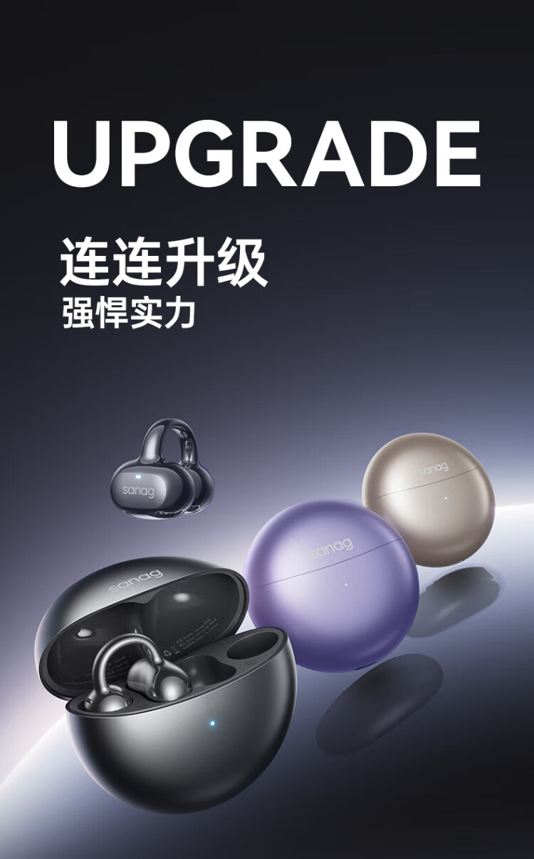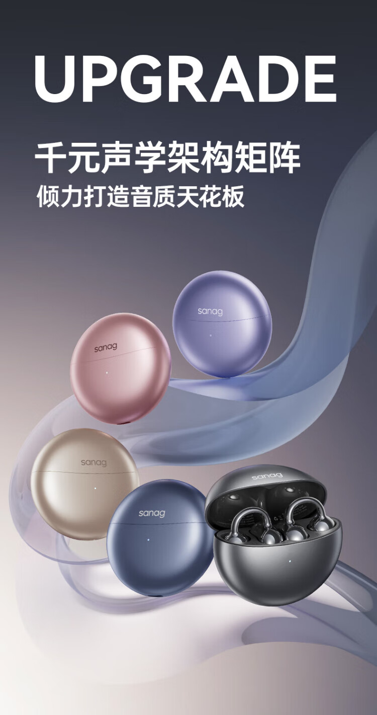 SANAGS6S Ultra Titanium Dynamic Coil National Subsidy 15% Ear Clip AI Bluetooth Headphones Bone Conduction Concept Non-in-Ear Open Sports Over-Ear Wireless Headphones
