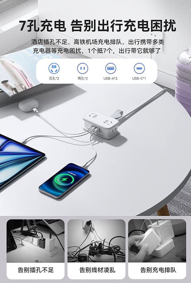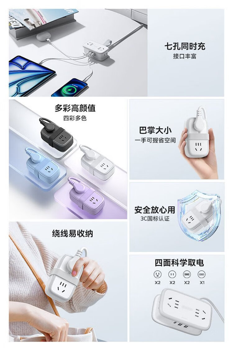 Newton's Law Pocket Plug Strip/USB Plug Strip/Travel Socket/Multi-Function Charger/Power Strip/Wiring Board/Pocket Row Student Dormitory Winding Cable for Easy Storage/Mini Portable