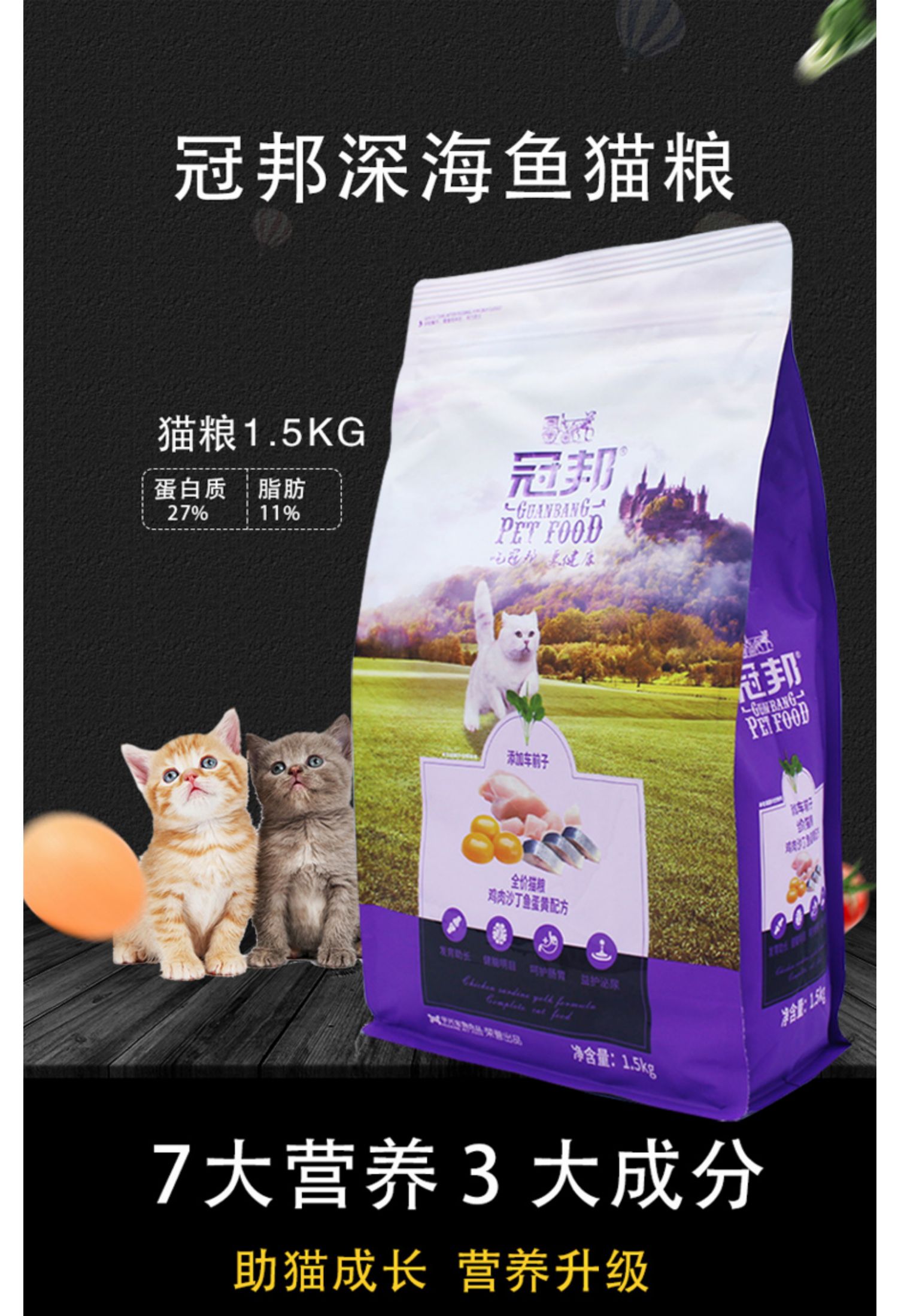 Guanbang Cat Food General Full Price Cat Food for Adult Cats and Kittens Tuna Chicken Goat Milk Formula 1.5kg