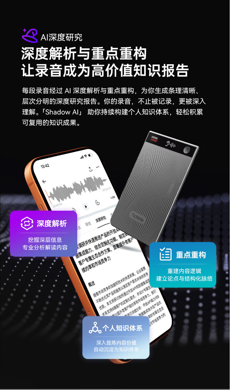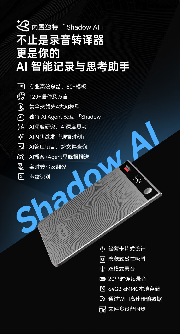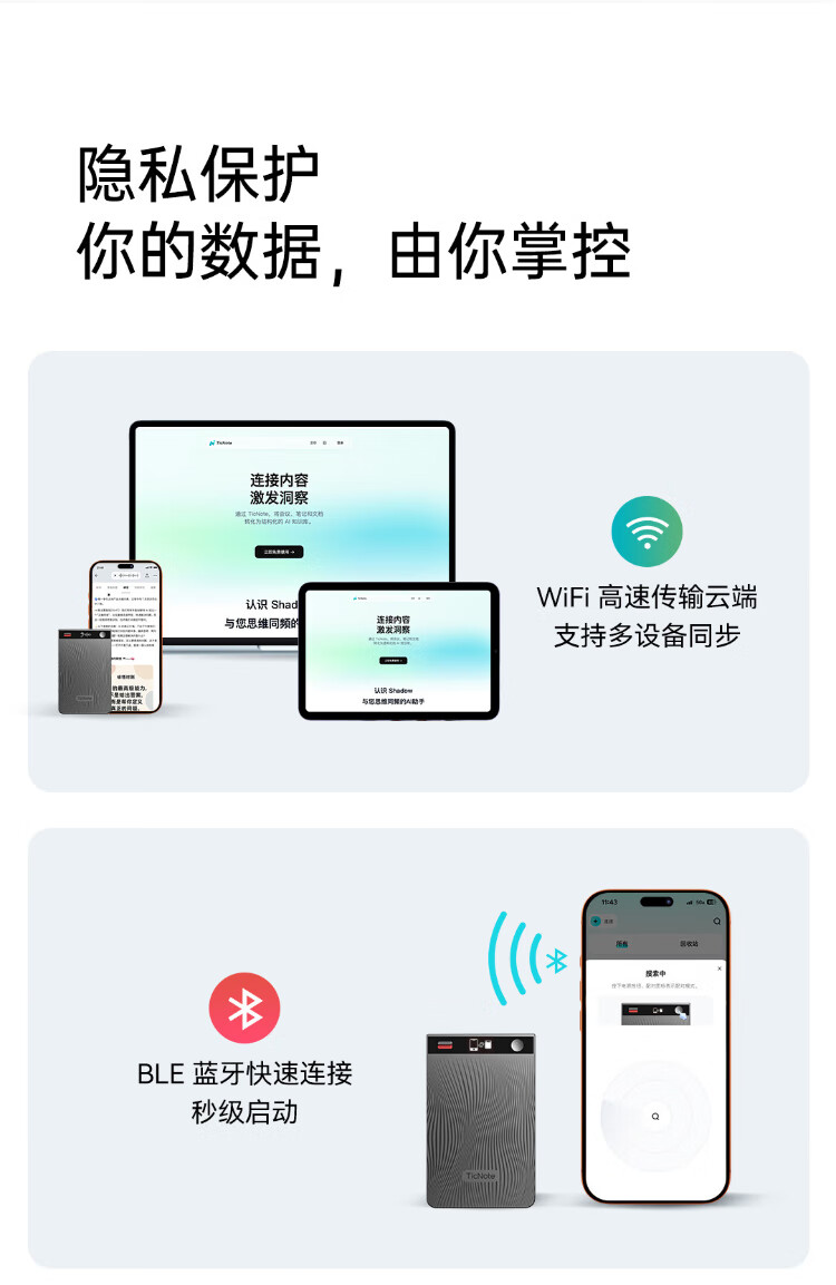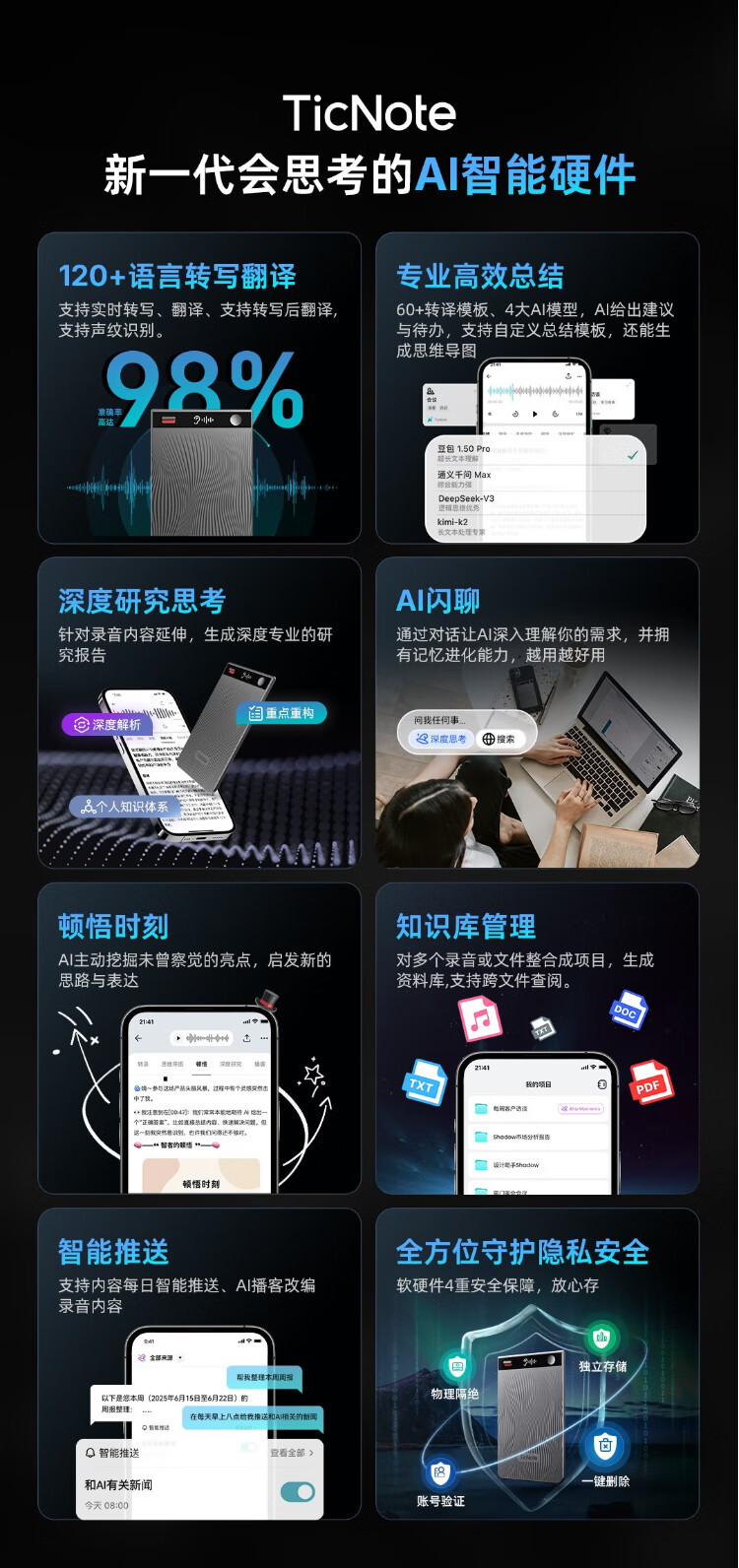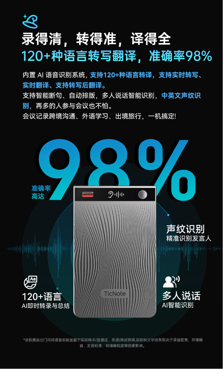 Mobvoi TicNote AI Recorder Joy Edition Classic Gray Recording to Text Recording Card Intelligent Noise Reduction Portable Professional Recording Equipment Recorder Minutes Summary
