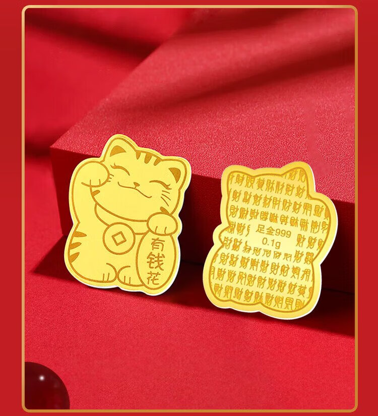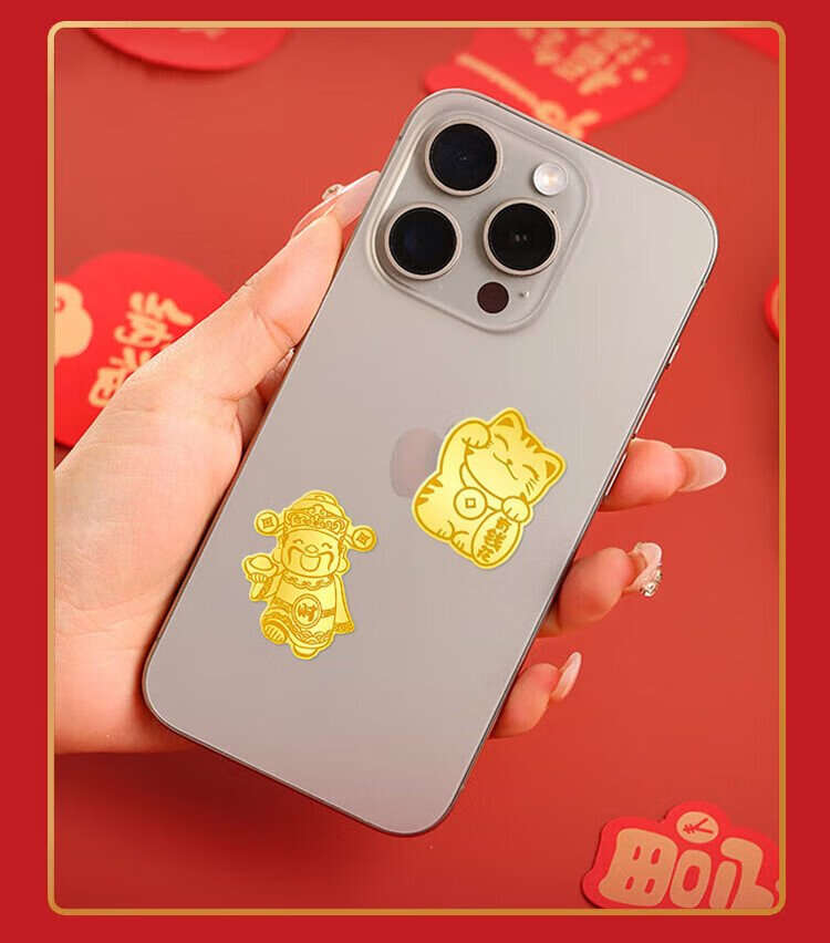ALLOVE gold coin cat gold mobile phone patch 999 pure gold sticker investment gold birthday gift for girlfriend, wife and husband