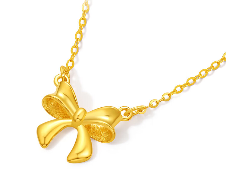 Saturday blessing yellow 18K gold bow necklace birthday gift for girlfriend C0616244 40+5cm