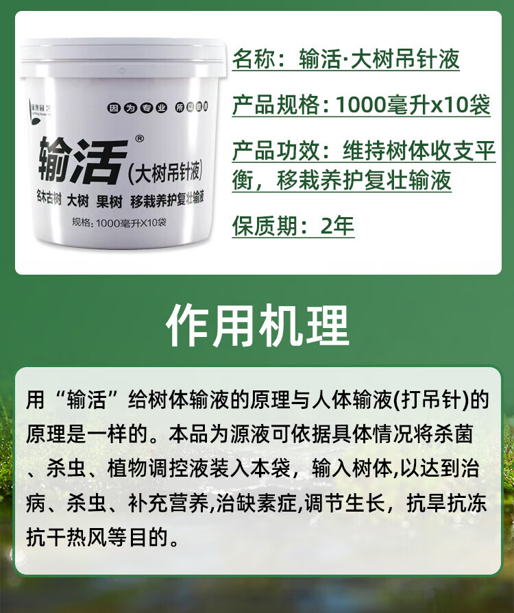 Live large tree nutrient solution, hanging needle solution, universal transplanted tree resurrection solution, fruit tree nutrient solution 1000ml/bag