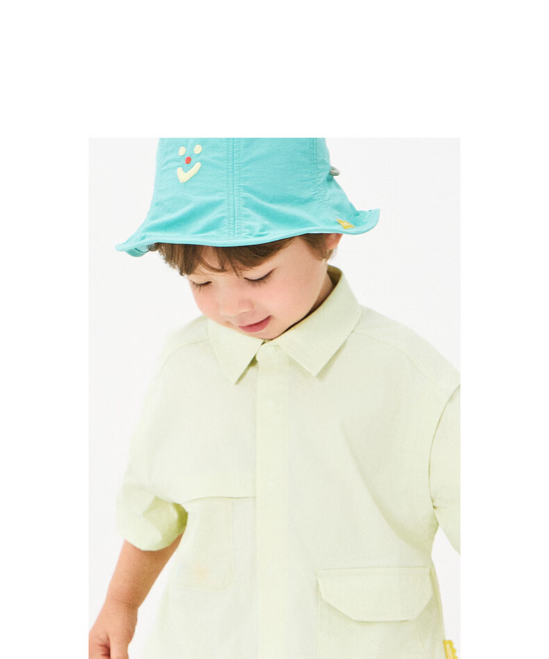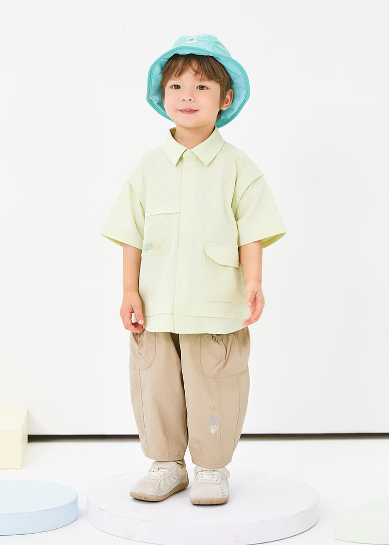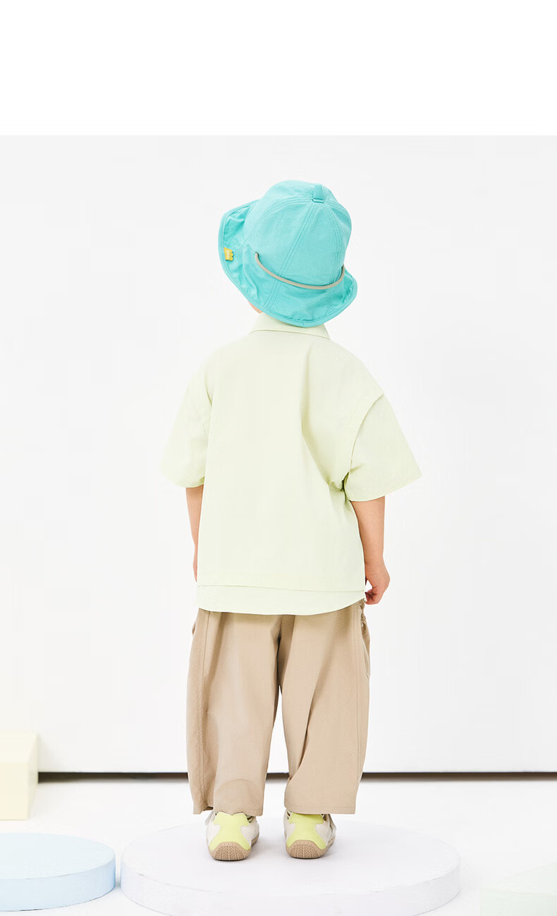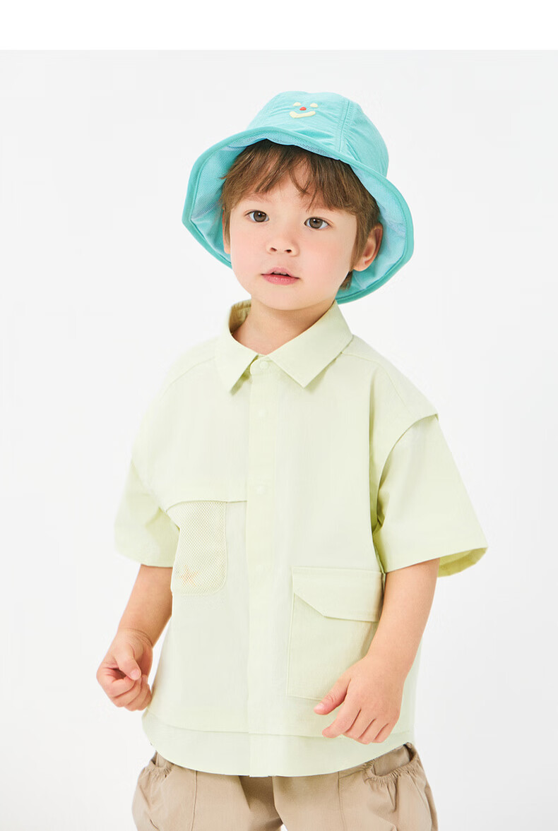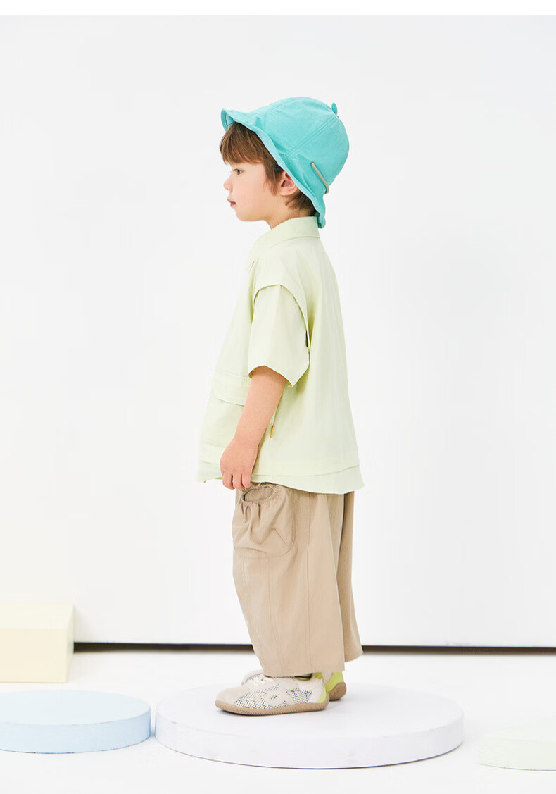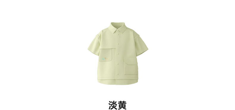 Papa summer children's shirt for boys and girls, two-piece fake short-sleeved tops, cool, moisture-absorbing and quick-drying, light yellow 110