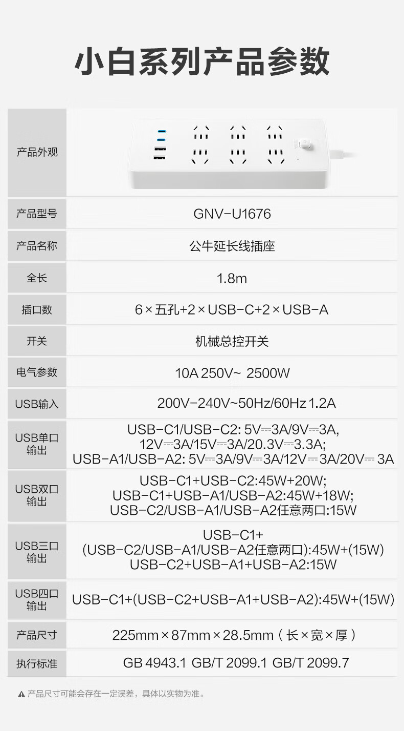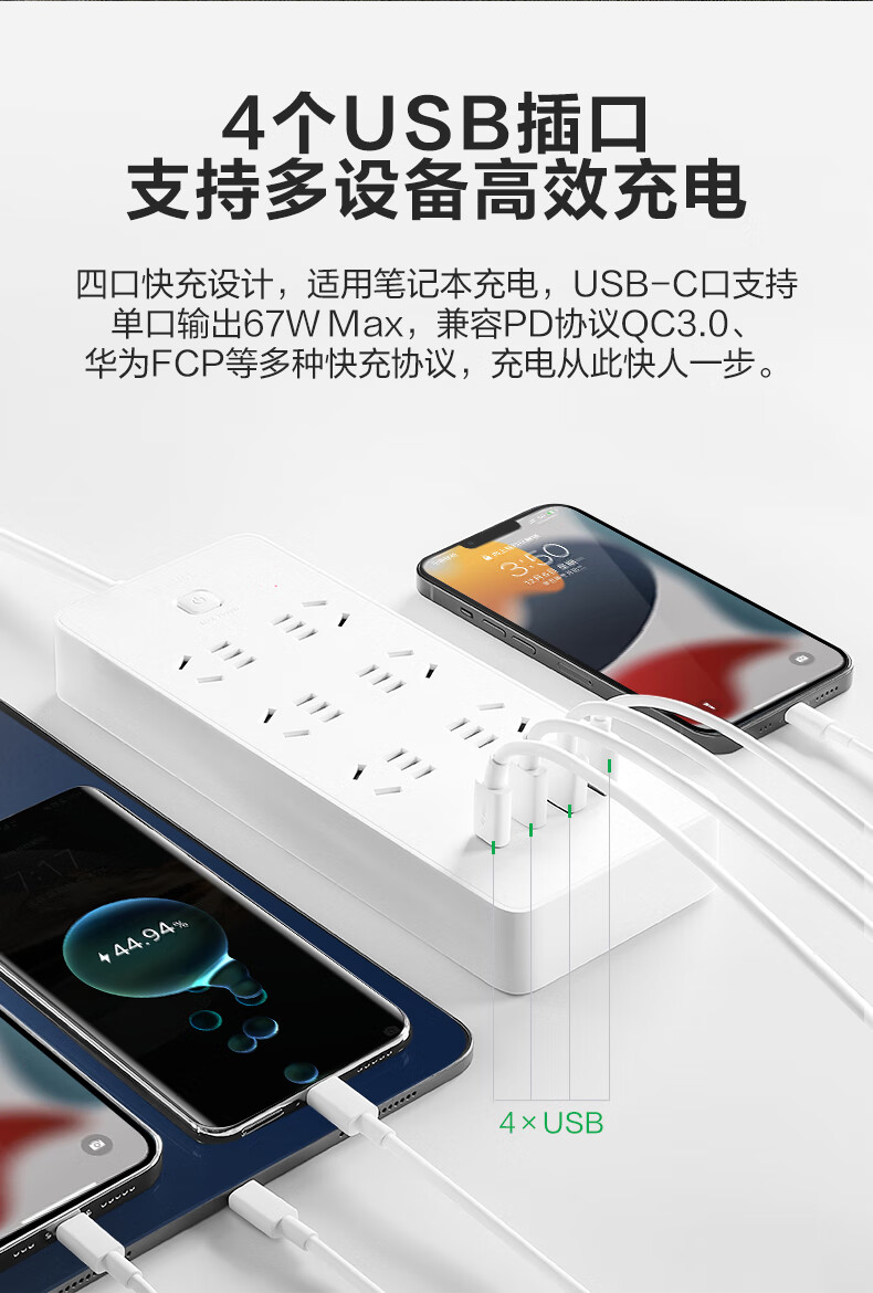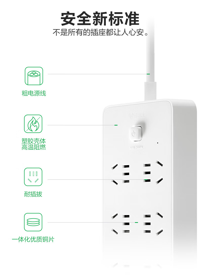 Bull USB socket multi-function mobile phone headset usb fast charging plug board home student dormitory plug strip with line switch drag line board 2USB+2 sockets full length 1.5 meters UUC122
