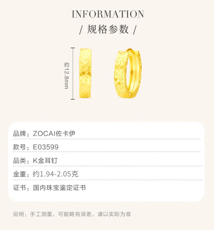 Zokai yellow 18K gold earrings ring crushed ice earrings birthday gift for girlfriend E03599