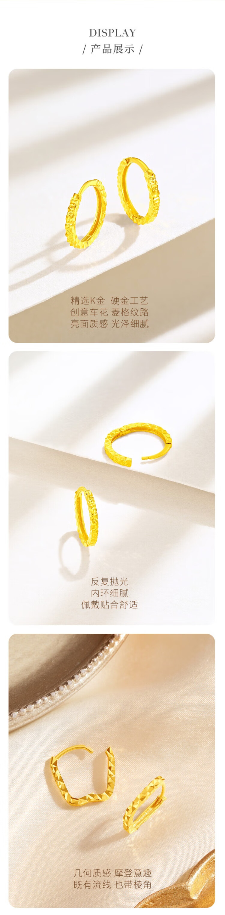 Zokai Yellow 18K Gold Earrings Geometric Crushed Ice Earrings Birthday Gift for Girlfriend E03634
