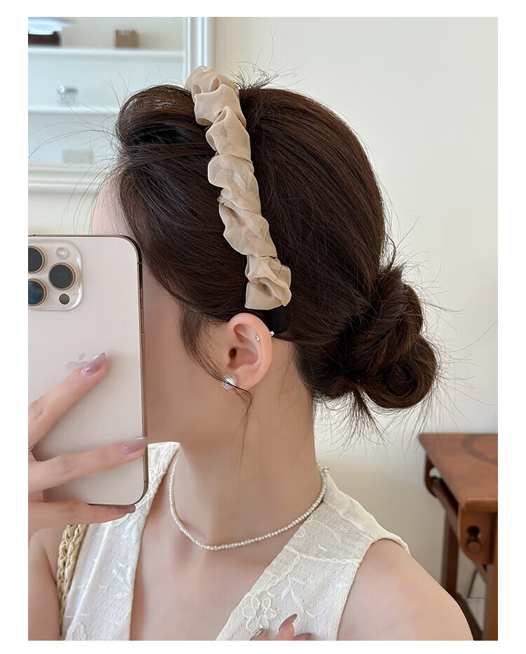 Chimera (CHIMERA) 2-piece mesh pleated headband, non-slip toothed headband, hair volume, high skull hair accessories, headband, girl's birthday gift