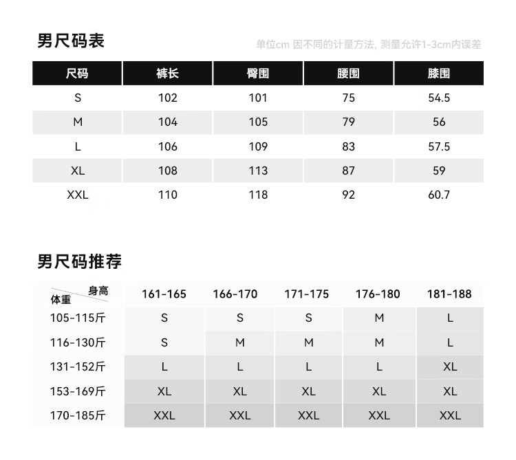 Outseam (cm) 99 cm 101.5 cm 104 cm 106.5 cm 109 cm