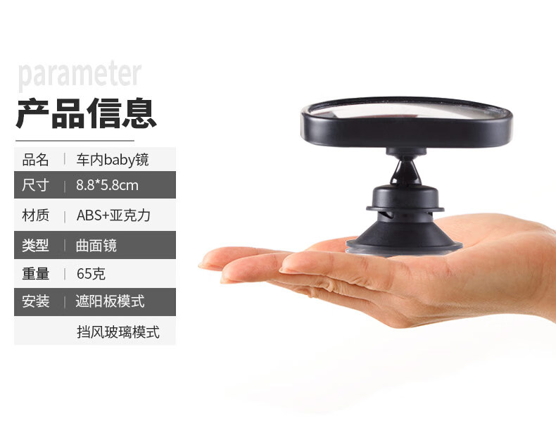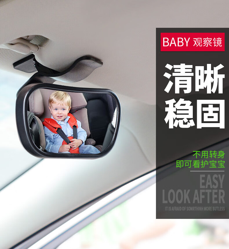 Car baby rearview mirror, children's observation mirror, car rearview mirror, car baby mirror, auxiliary wide-angle curved mirror, curved mirror, mini baby observation mirror (including suction cup clip)
