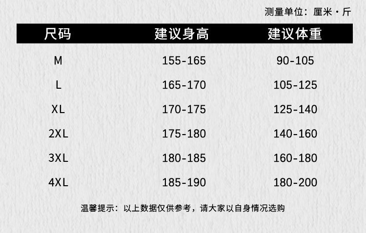 China (cm) 165 / 88-90 170 / 96-98 175 / 108-110 180 / 118-122 185 / 126-130