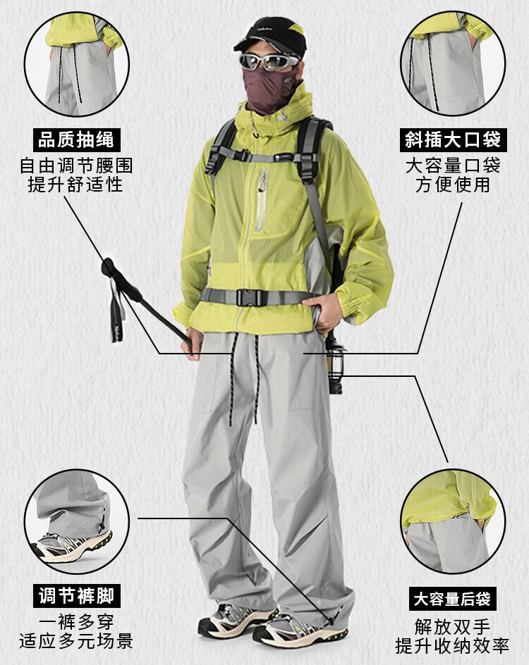 LOMBT outdoor mountaineering casual pants men's autumn sports loose and versatile waterproof quick-drying paratrooper pants LK59 light gray L