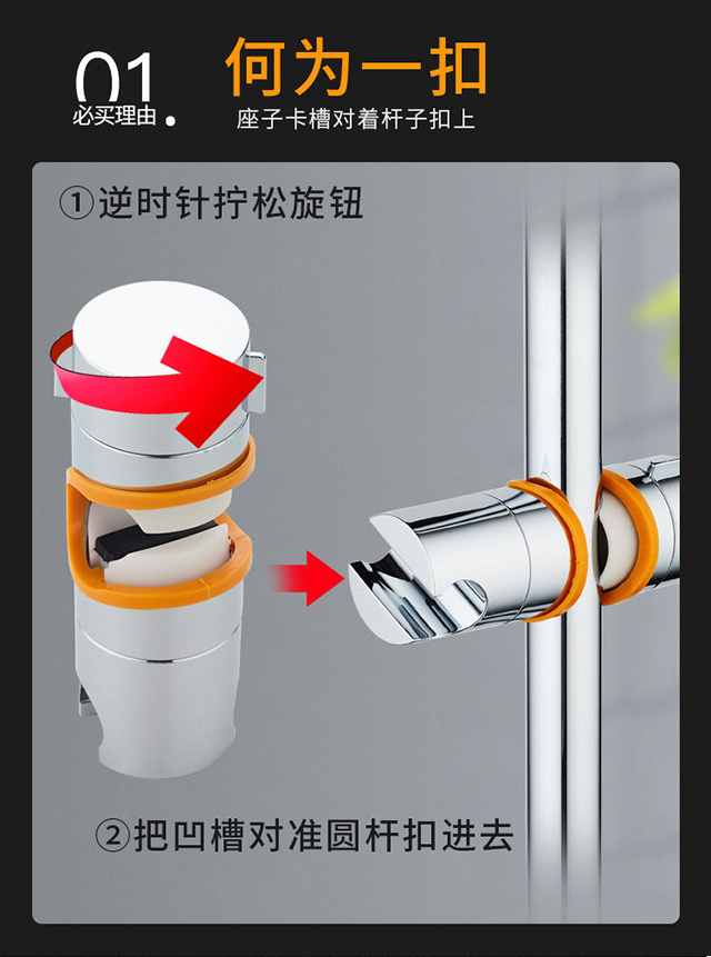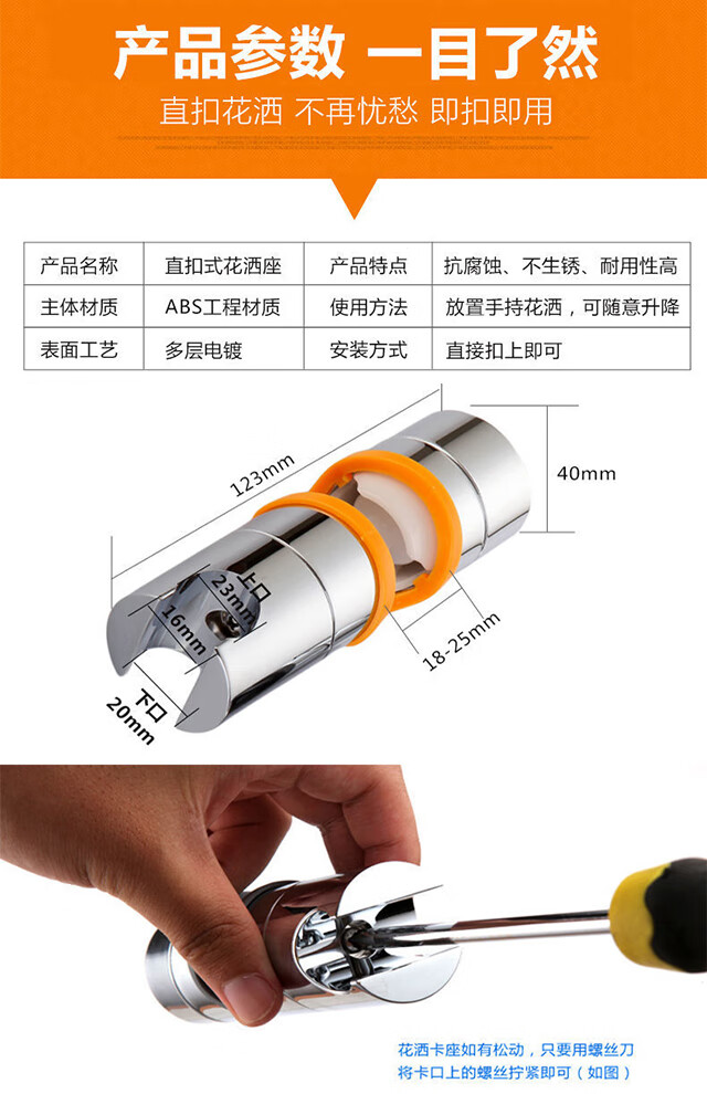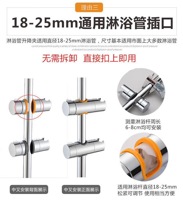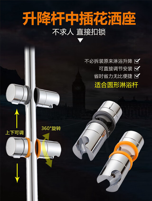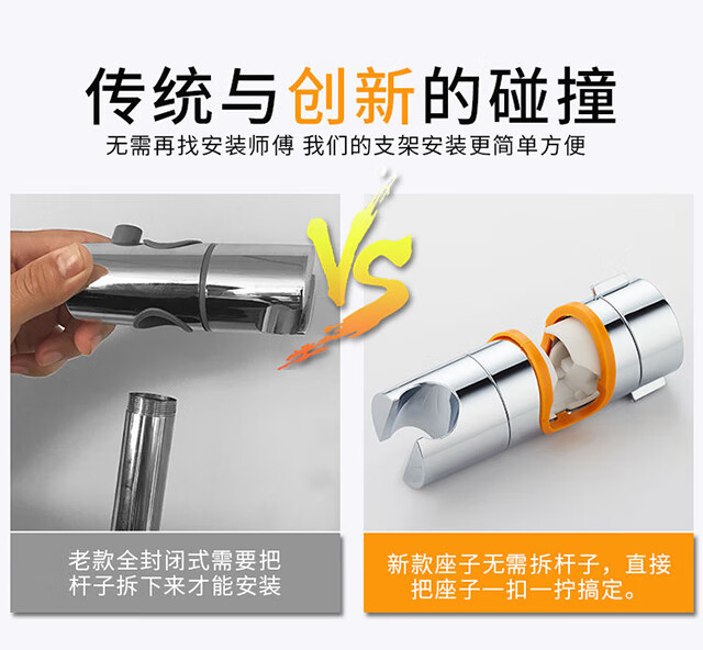 Rusalka no-punch lifting rod shower bracket shower shower pipe movable seat fixed seat rain shower head adjustable base device no-disassembly installation shower head socket accessories gray