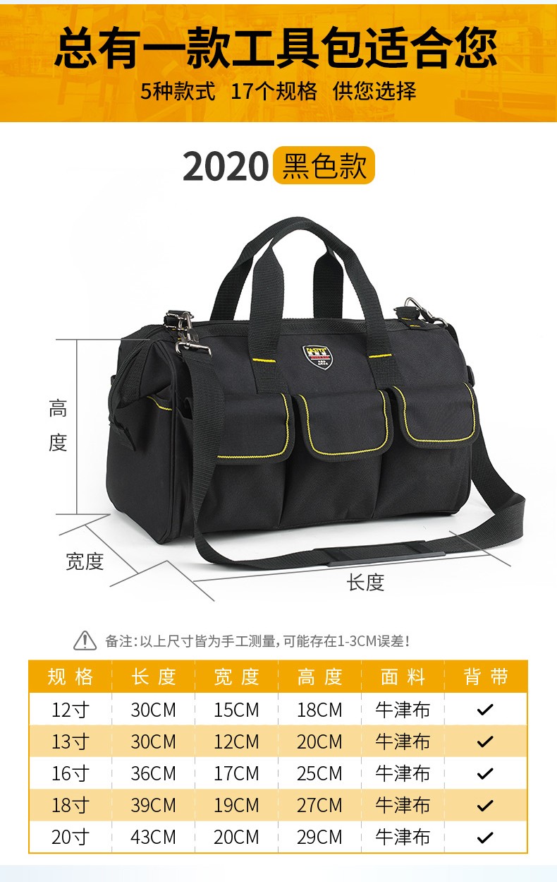 FASITE electrician tool bag shoulder bag portable canvas multi-functional repair and installation large-capacity storage bag black 16 inches