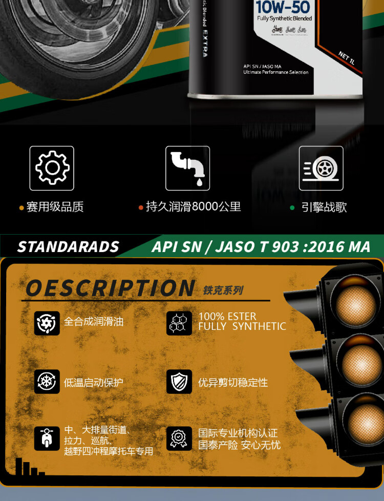 Wanwei Motorcycle Motor Oil Tieke Series Four-Stroke Fully Synthetic 10W-50 1L Special for Competition Medium and Large Displacement