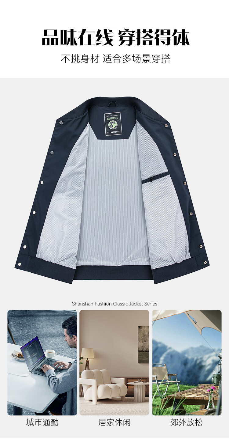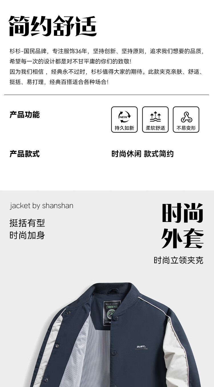 Shanshan (FIRS) fashion spring and autumn new baseball collar jacket men's trendy color matching sports outdoor men's tops
