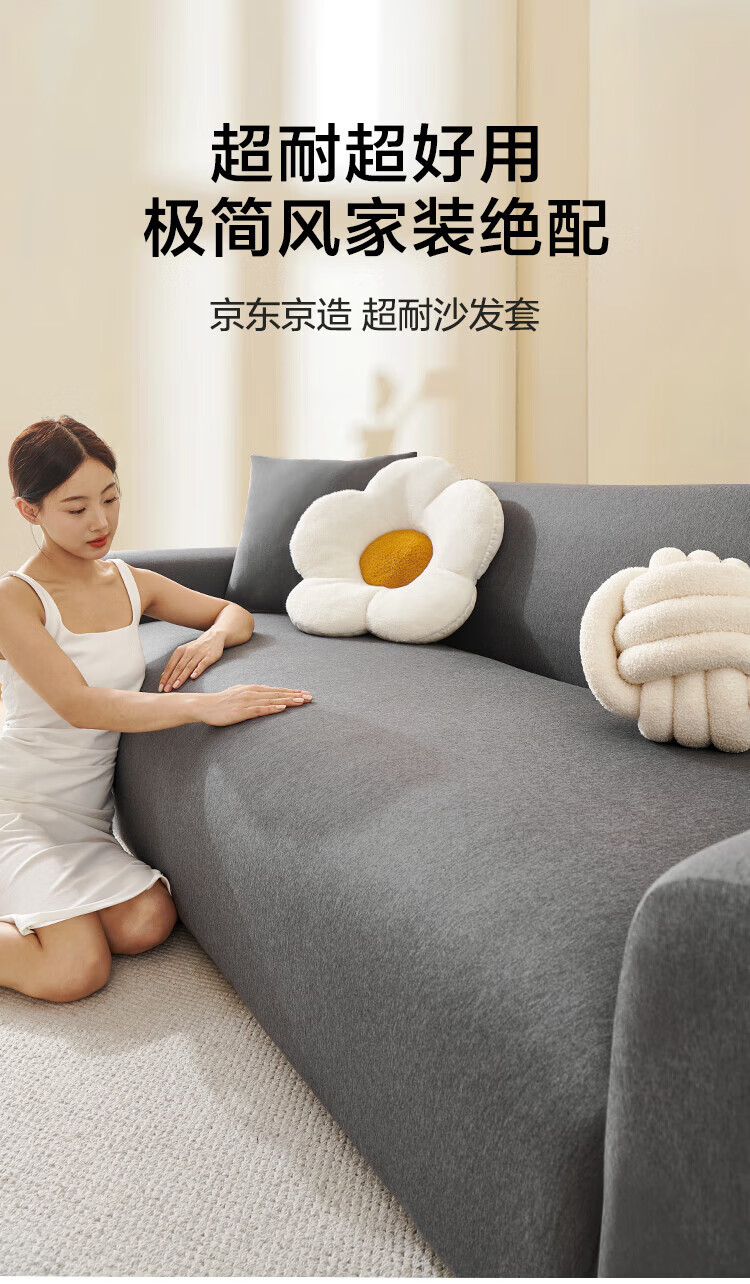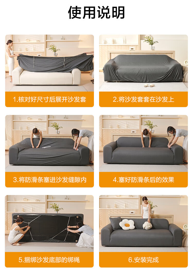 Made in Tokyo, super durable sofa cover, elastic all-inclusive sofa cushion cover, four-season universal sofa dust cover, gray - three-person