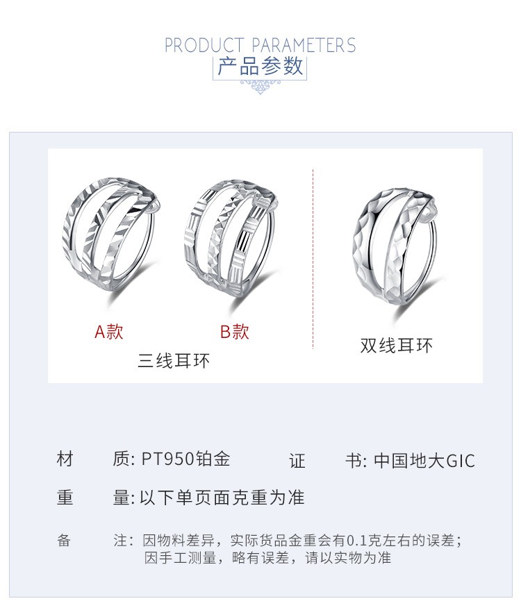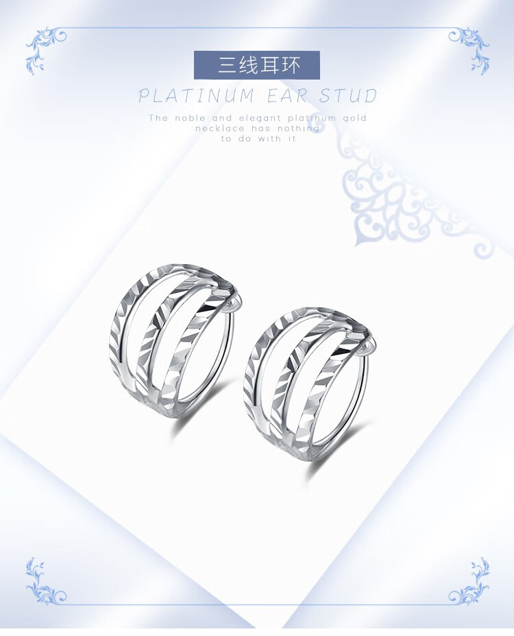Blooming Love Platinum Earrings for Women PT950 Platinum Earrings Women's Earrings Circle Platinum Earrings Birthday Gift Platinum Three-Line Earrings Approximately 1.47g (Type A)