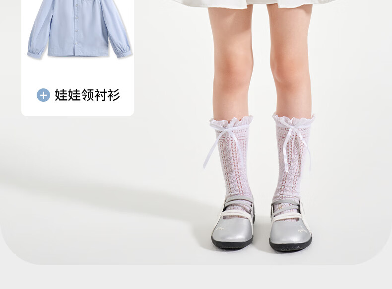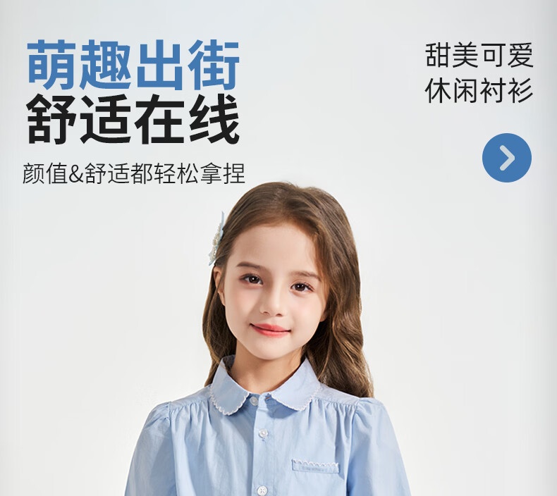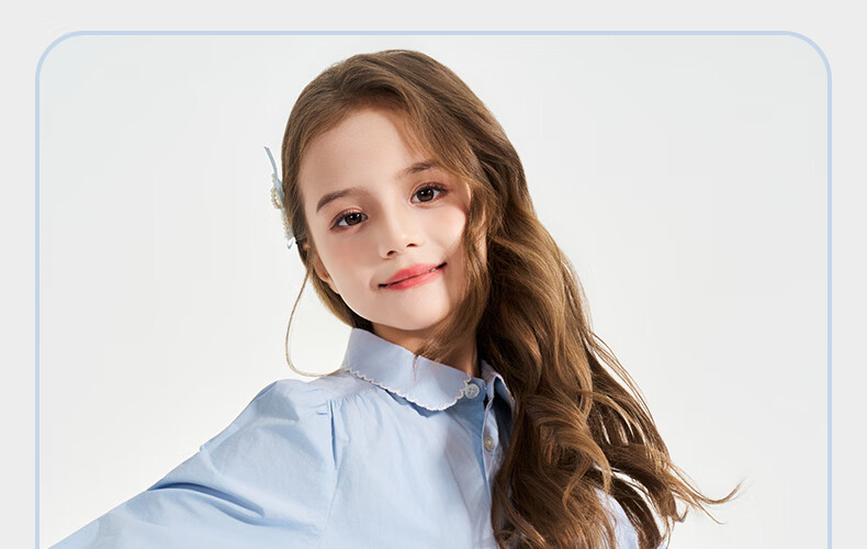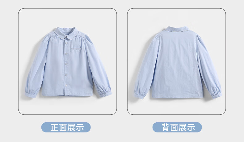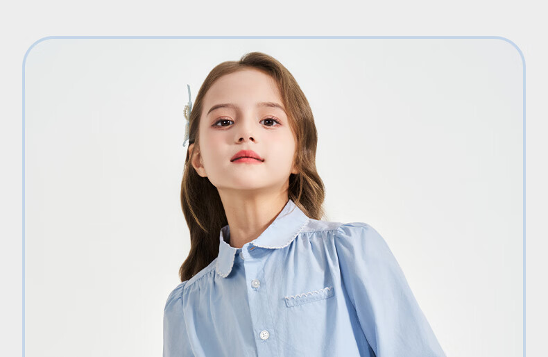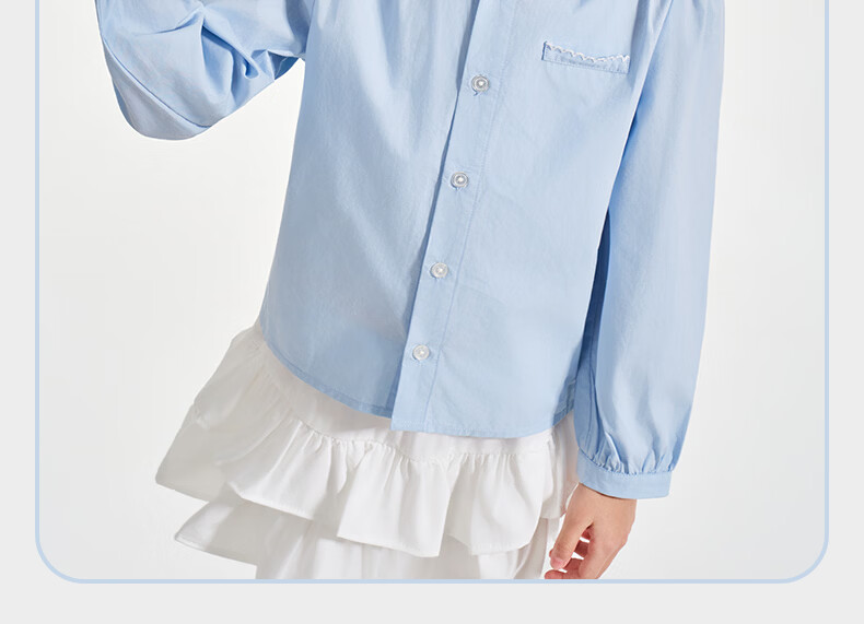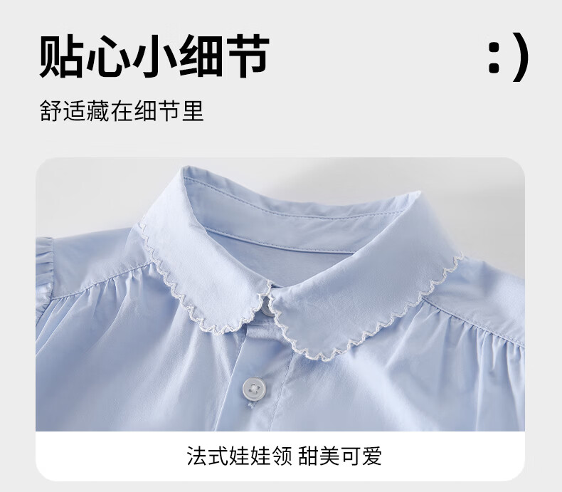 Luo Meng Girls' Shirt New Spring Clothing Medium and Large Children's Blue Cotton Shirt Children's Style Puff Sleeve Top Blue 130