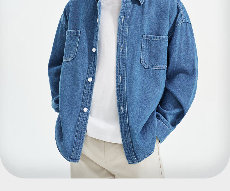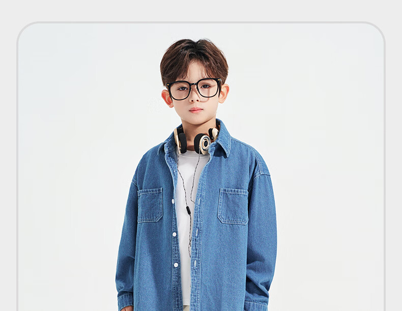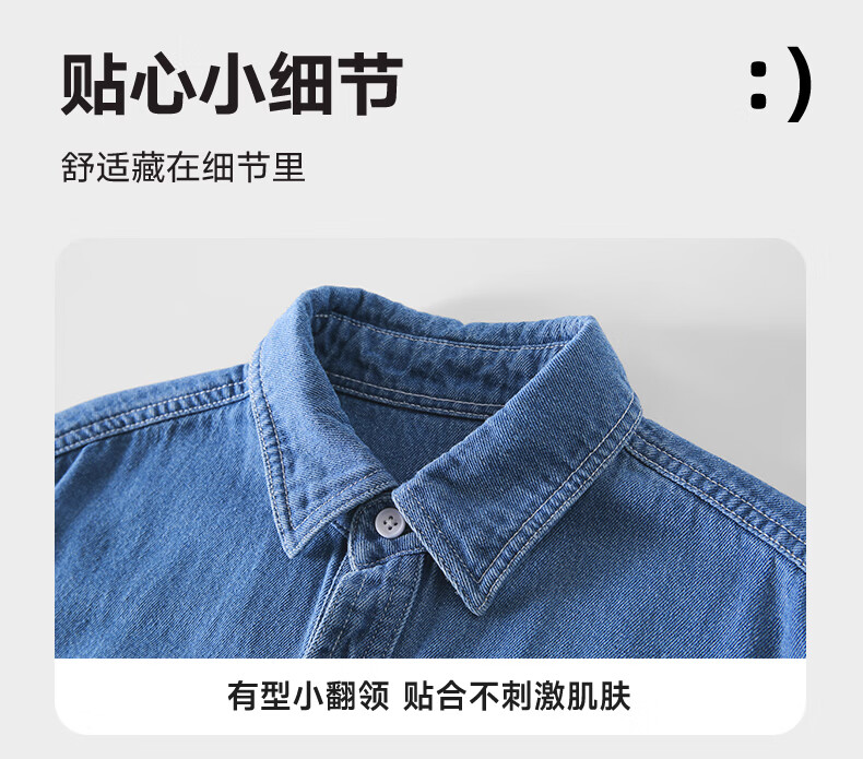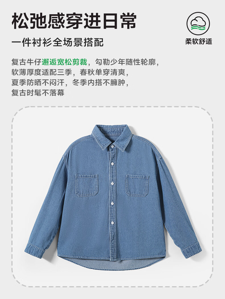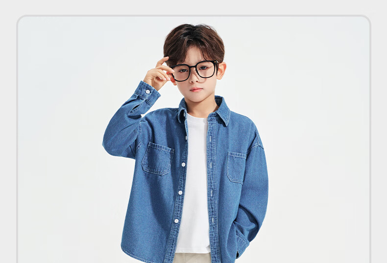 Romon children's denim shirt spring and autumn new children's retro soft denim long-sleeved shirt boys and girls jacket blue 140