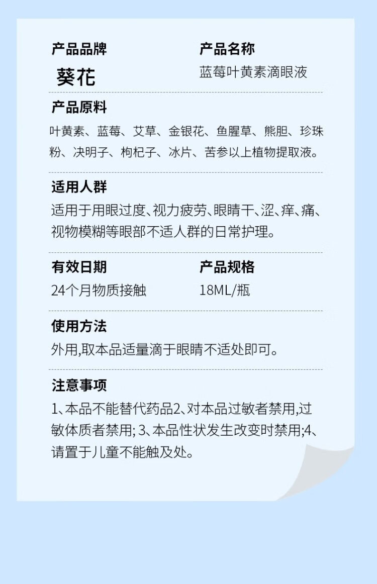 Sunflower blueberry lutein eye drops 18ml moisturizing eye protection relieve eye fatigue cleansing mild care solution non-eye drops