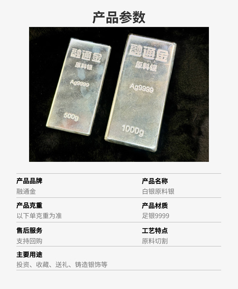 Rongtong gold and silver raw materials Ag9999, investment in silver bars, pure silver 9999 gift collection, solid pure silver bars, water shells, 1000 grams