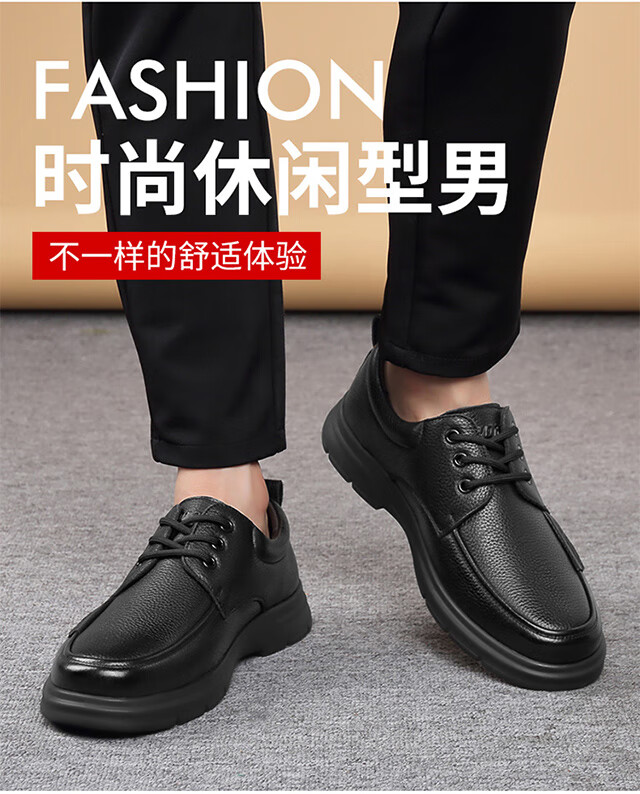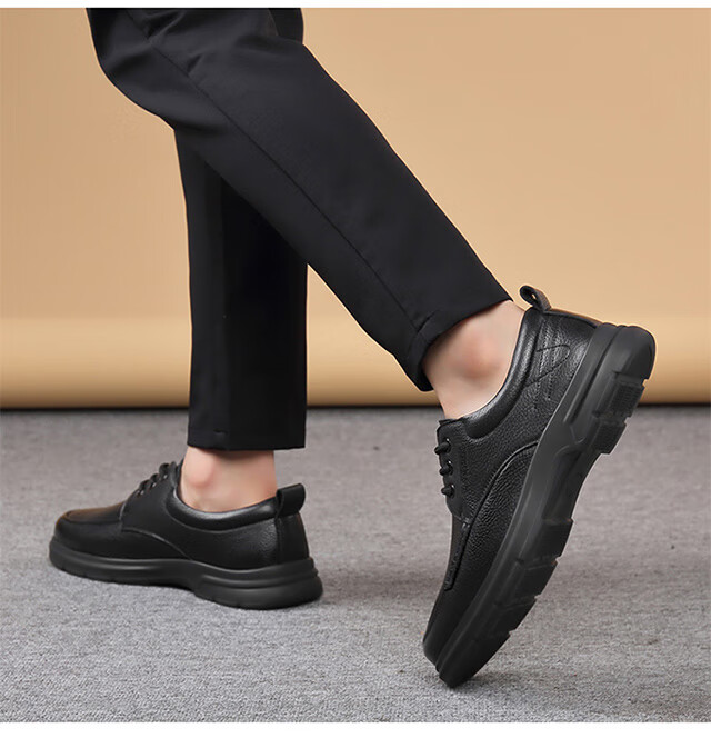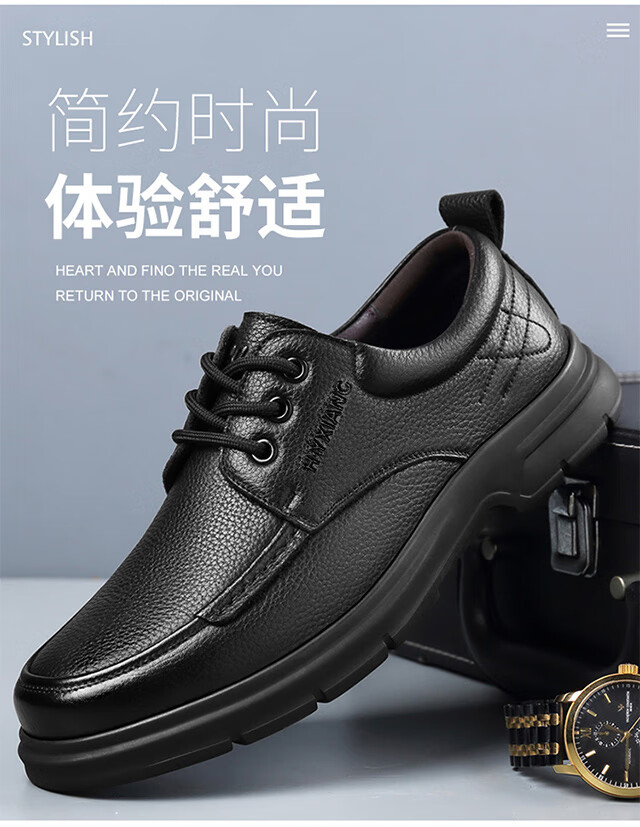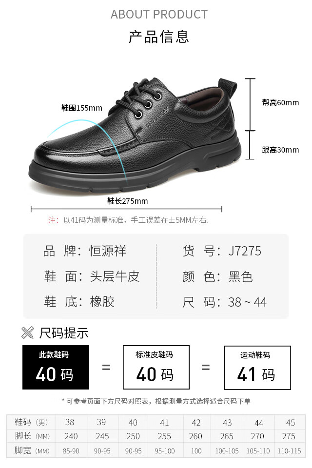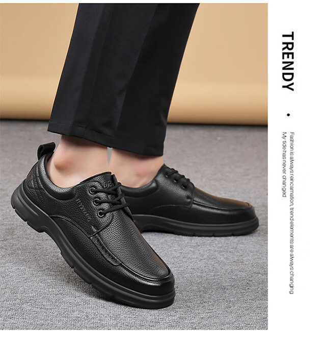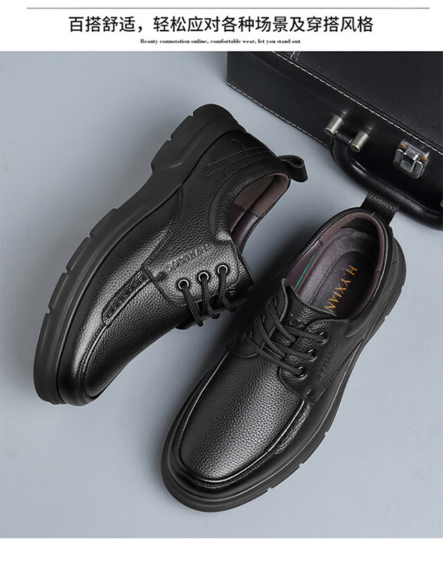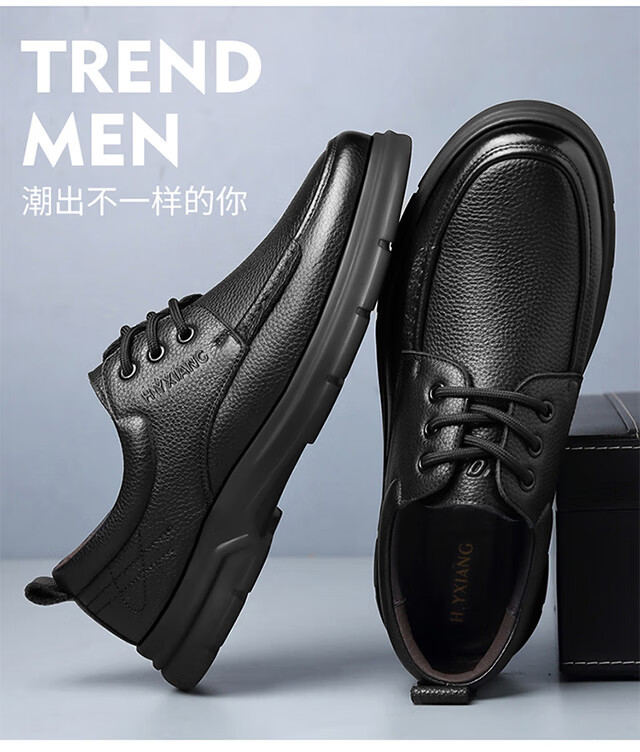 Hengyuanxiang leather shoes men's slip-on business casual lace-up new breathable driving loafers J7275 black 42