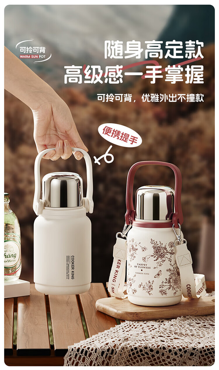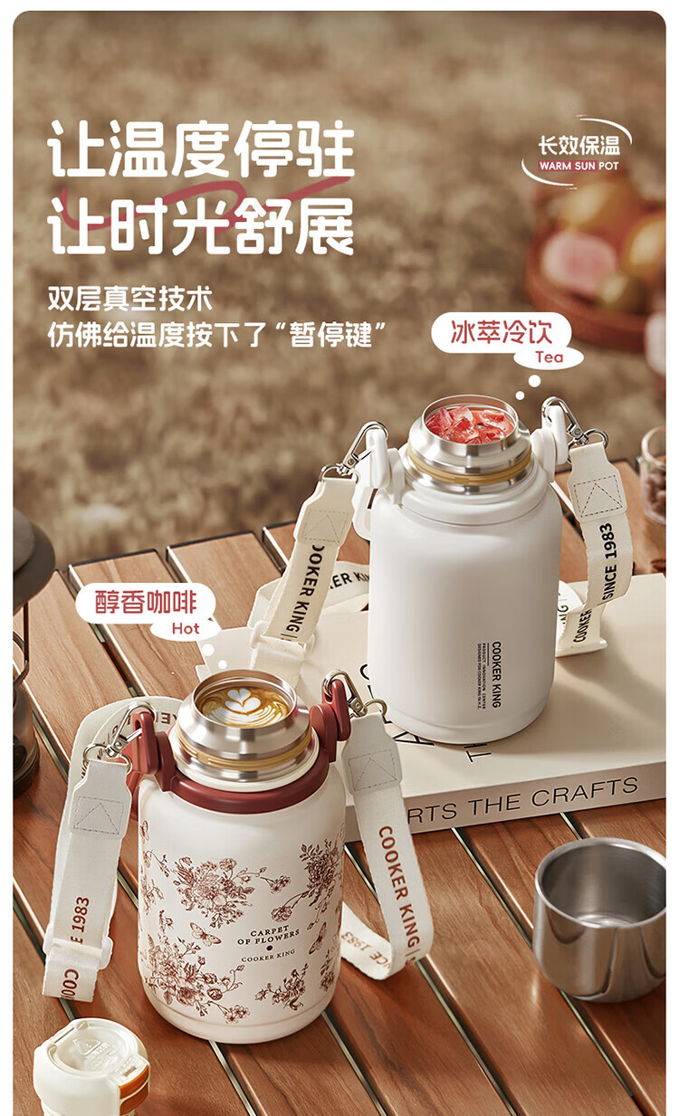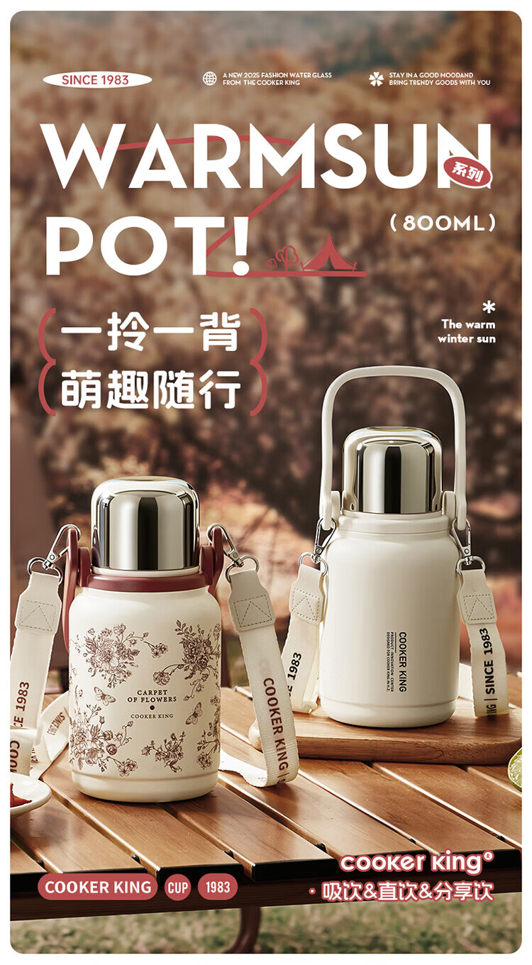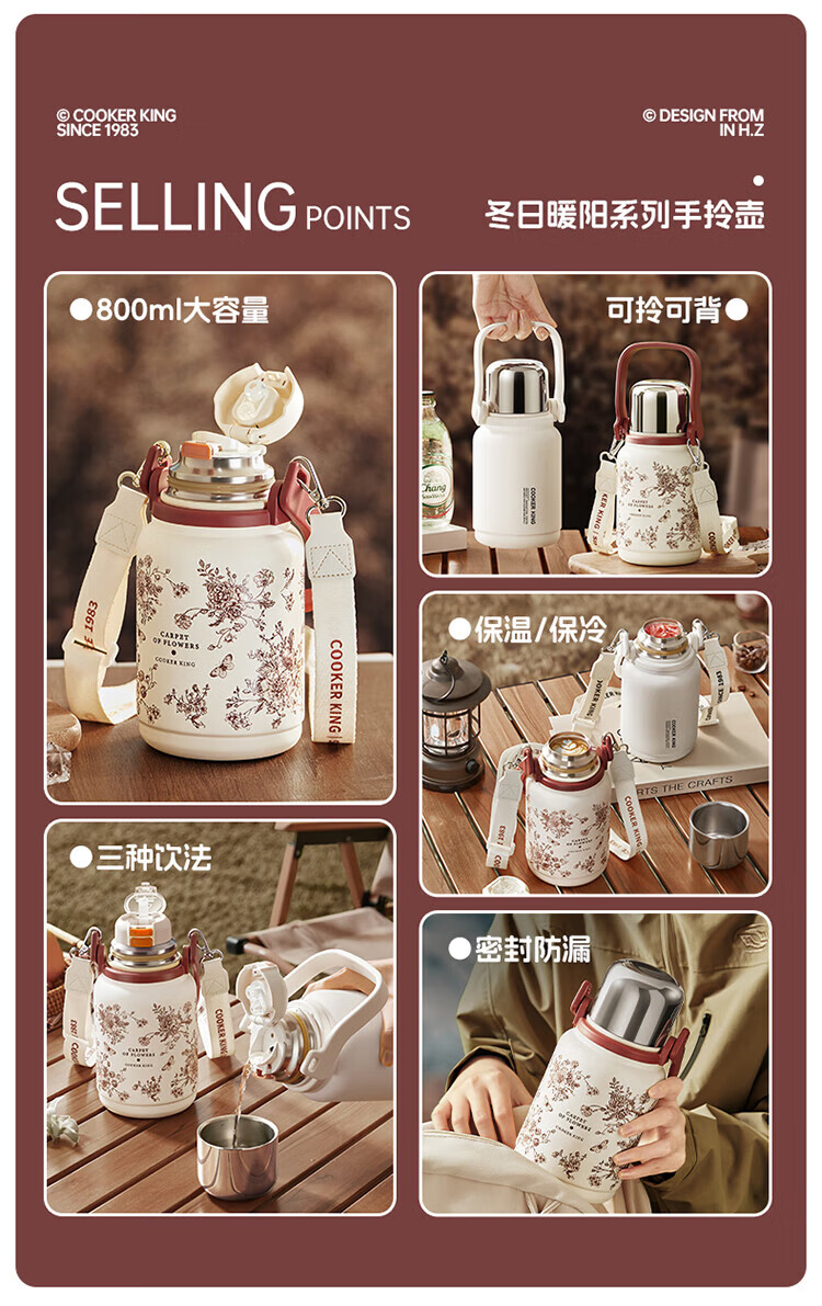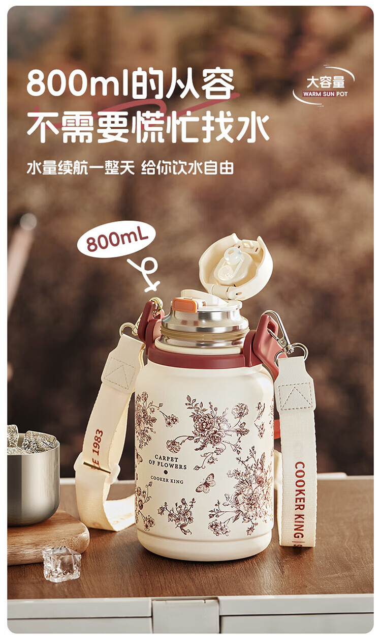 Cuidahuang thermos kettle large-capacity water cup for home outdoor outdoor hot water 316 stainless steel 800ml (Rose Holiday)