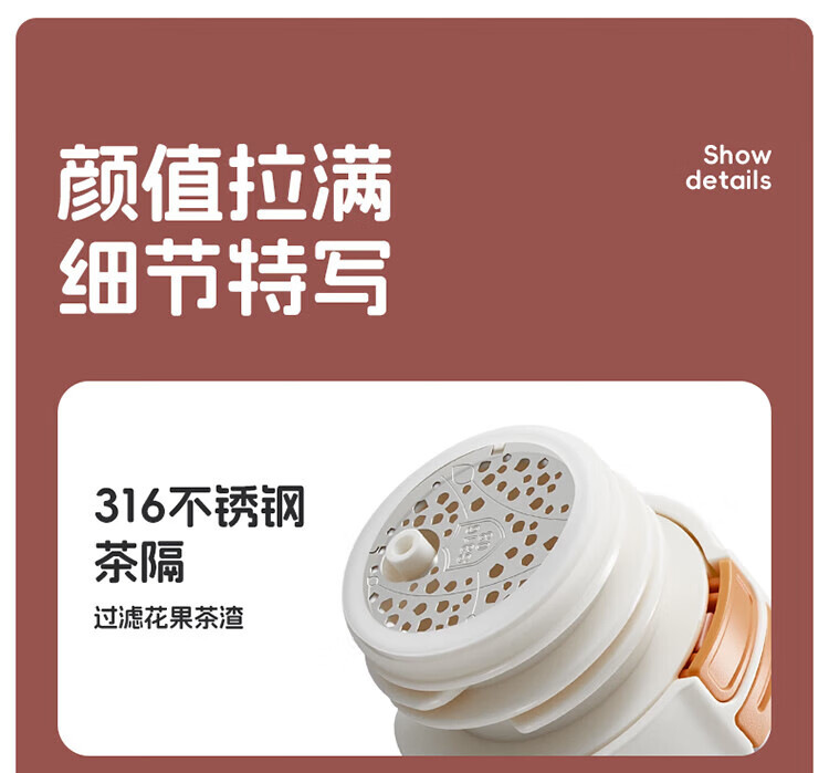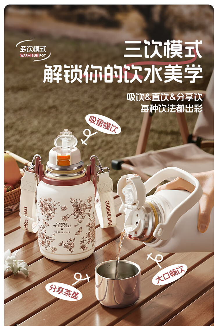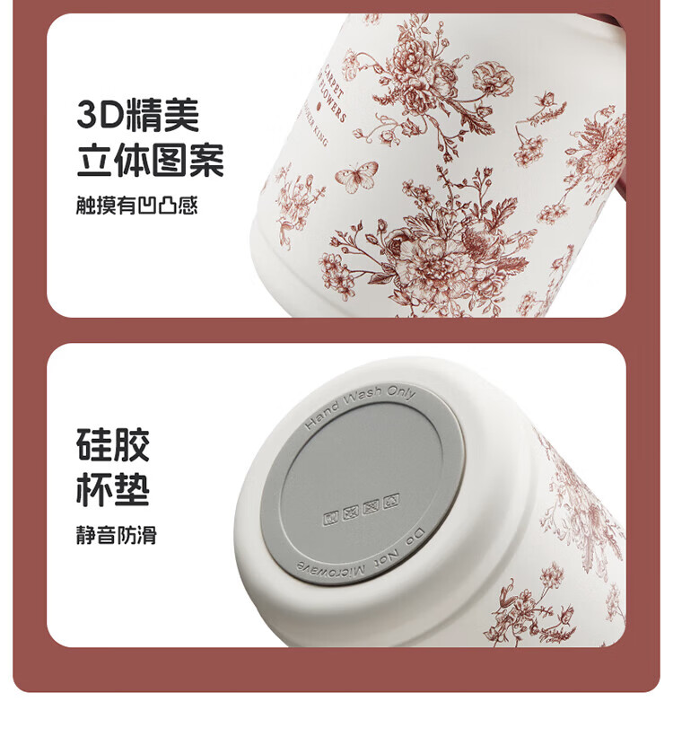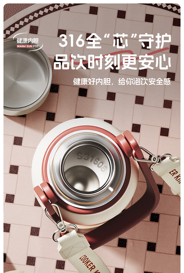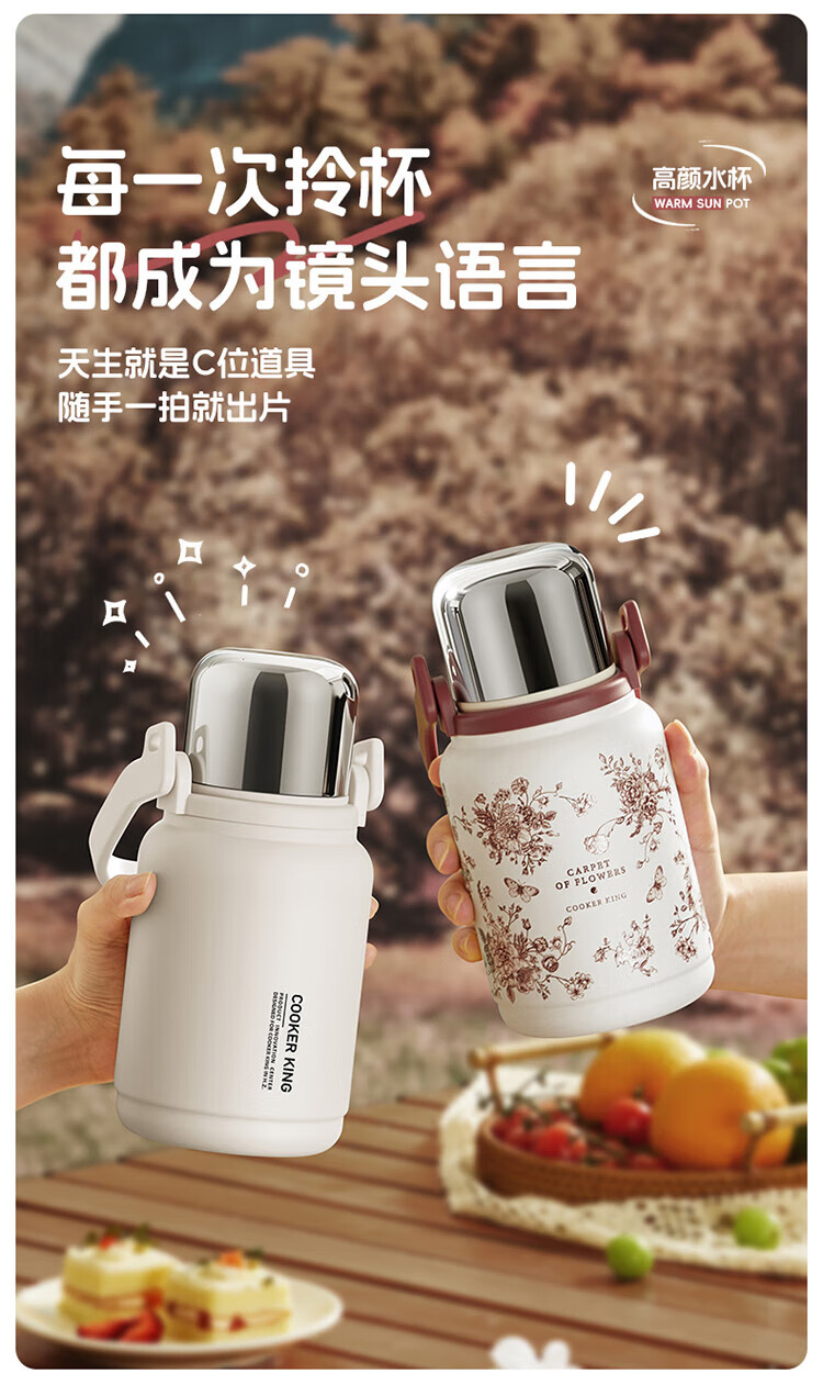 Cuidahuang thermos kettle large-capacity water cup for home outdoor outdoor hot water 316 stainless steel 800ml (Rose Holiday)