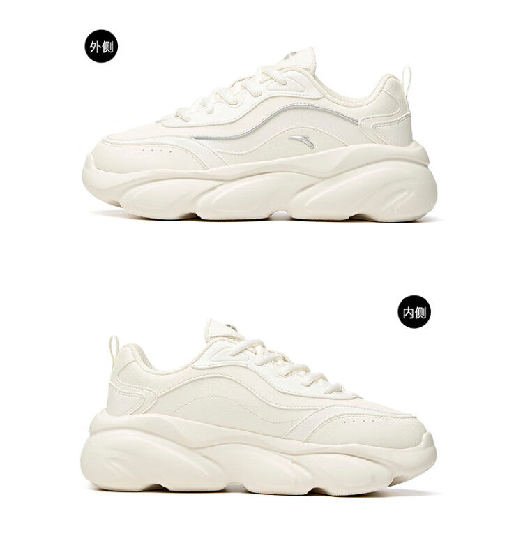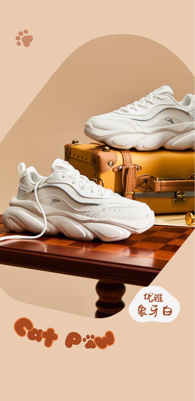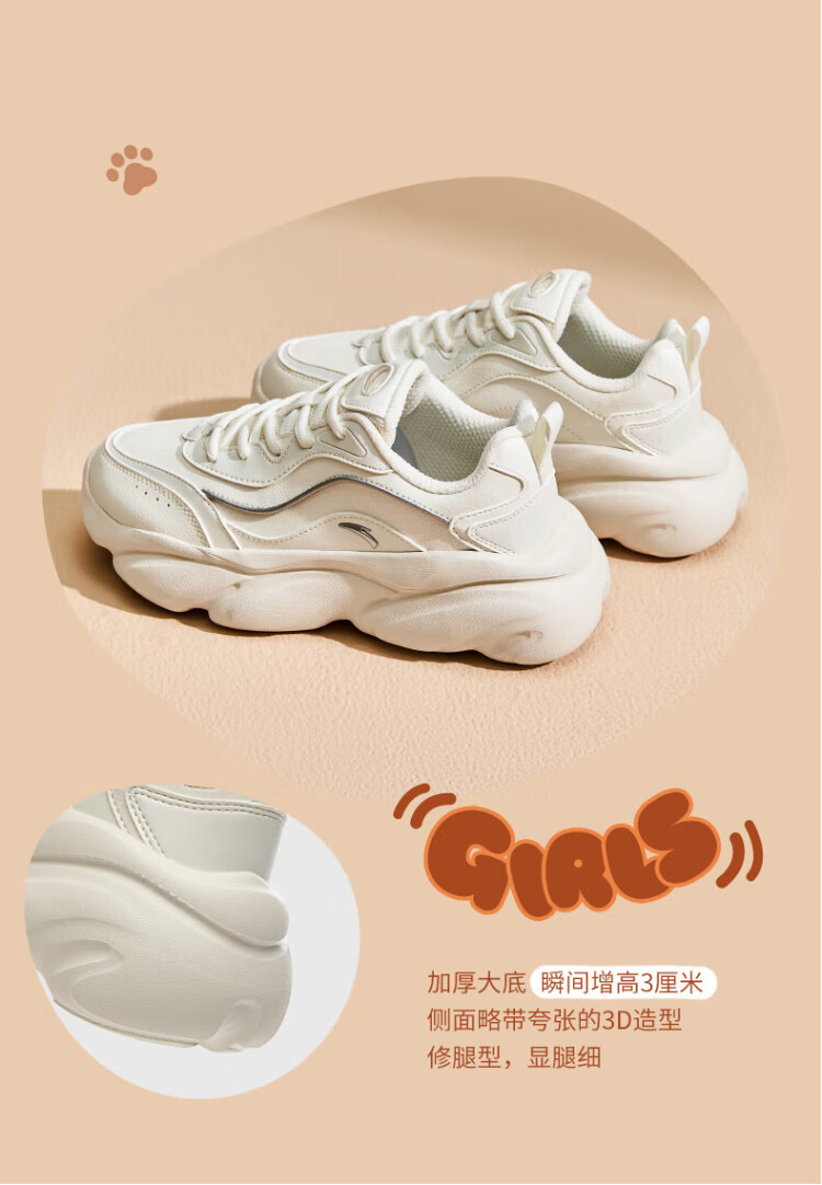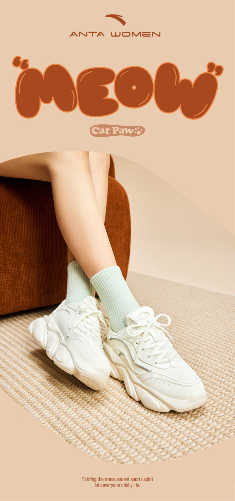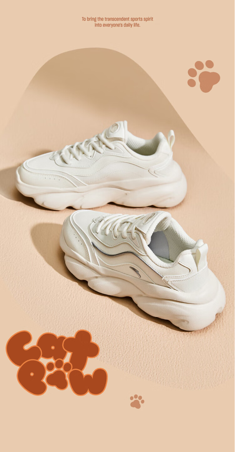 ANTA Meow Meow Shoes丨Guan Xiaotong's same style dad shoes women's shoes autumn and winter leather thick sole increased sports and leisure white shoes