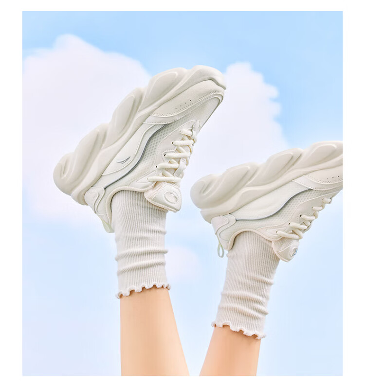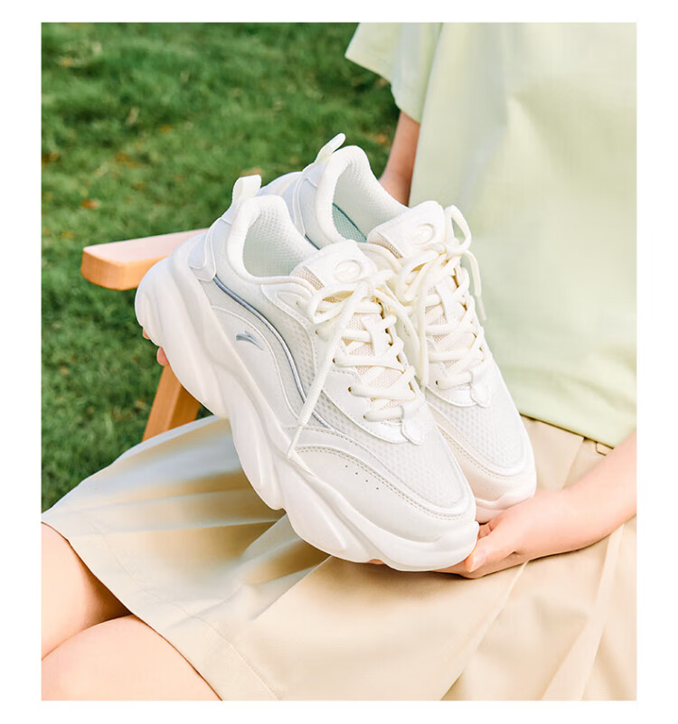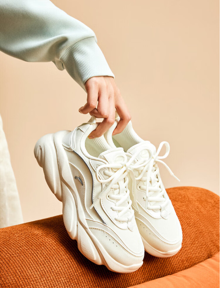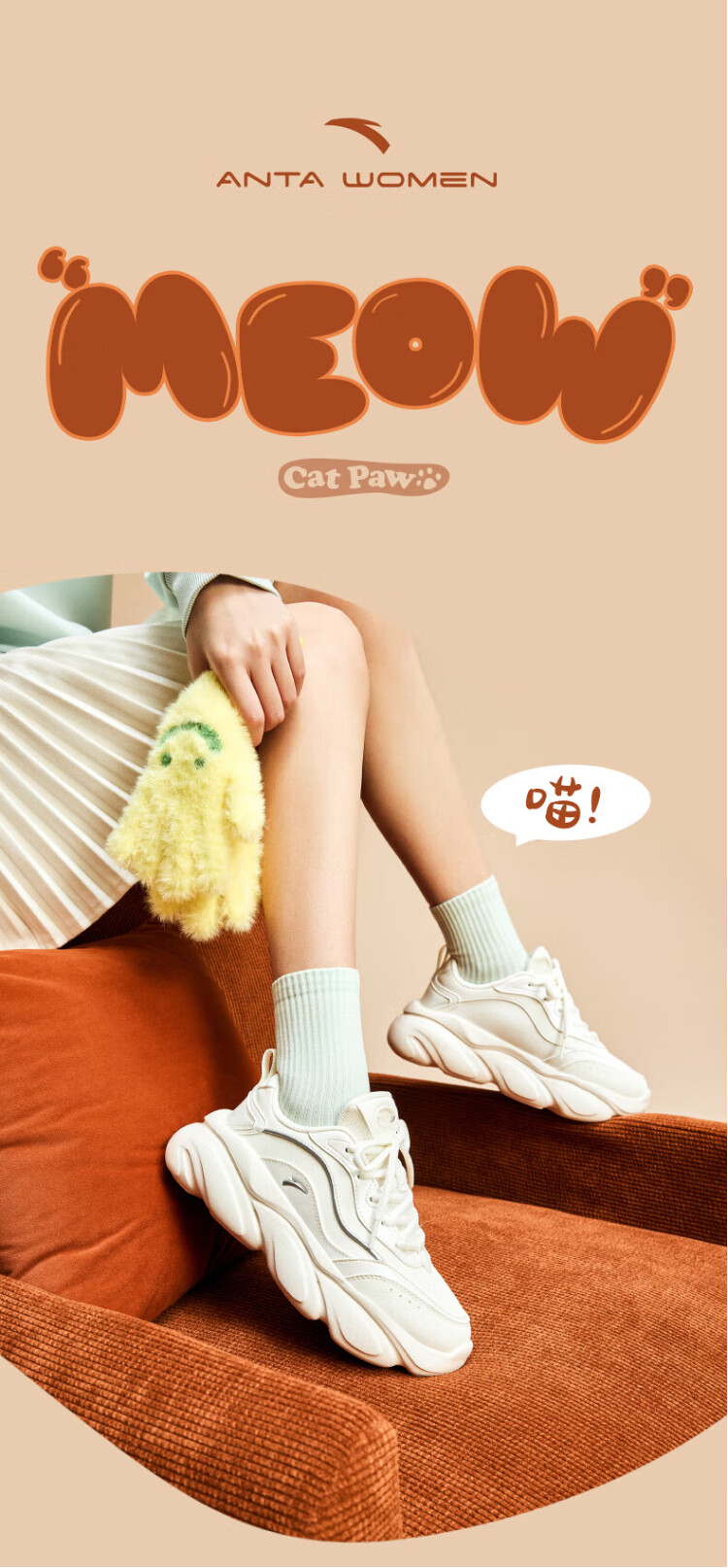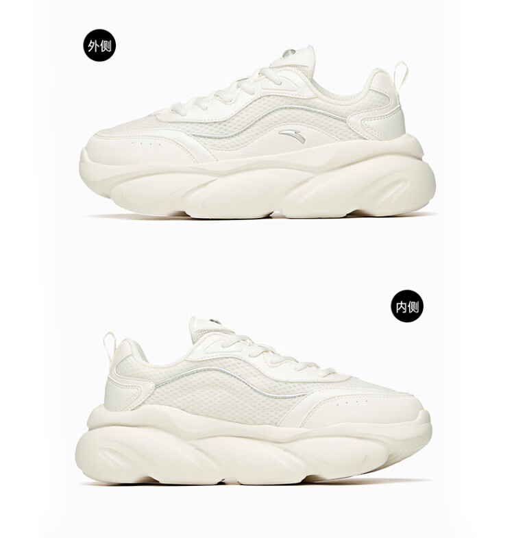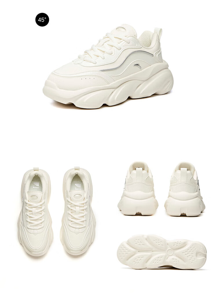 ANTA Meow Meow Shoes丨Guan Xiaotong's same style dad shoes women's shoes autumn and winter leather thick sole increased sports and leisure white shoes