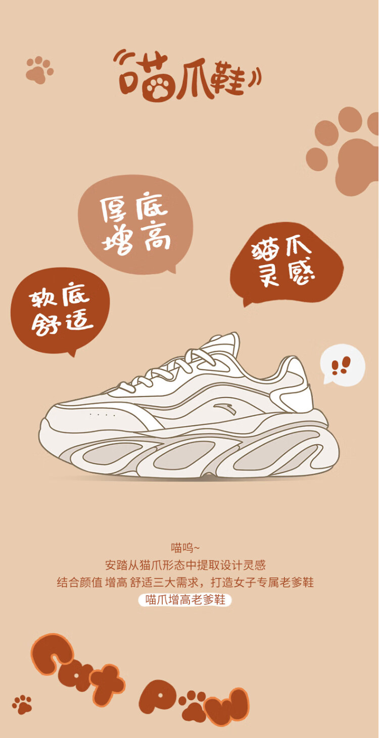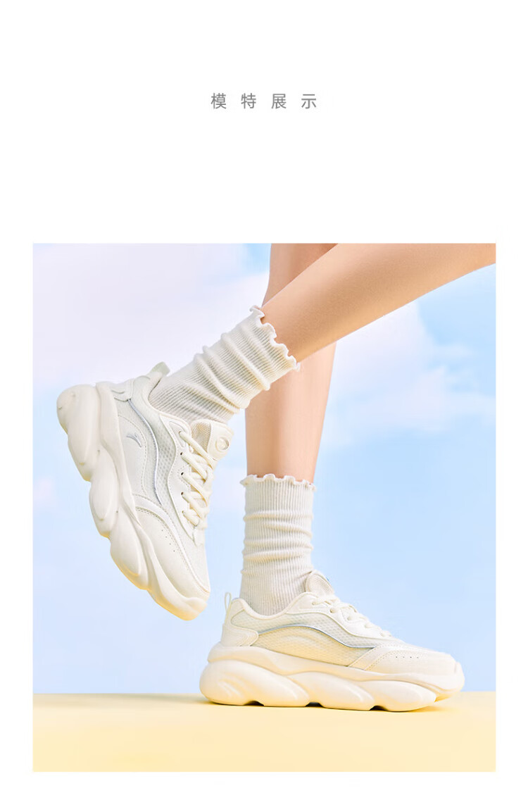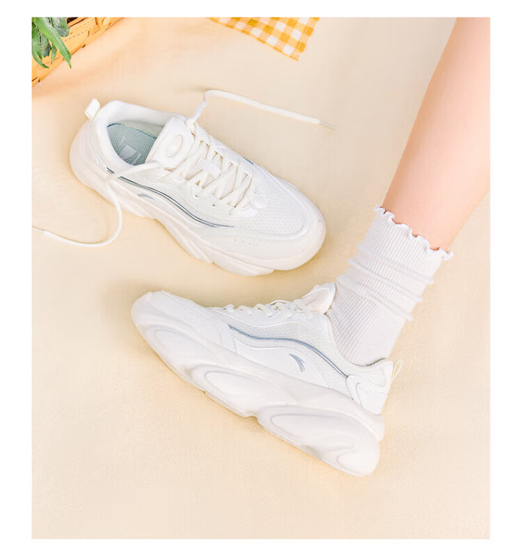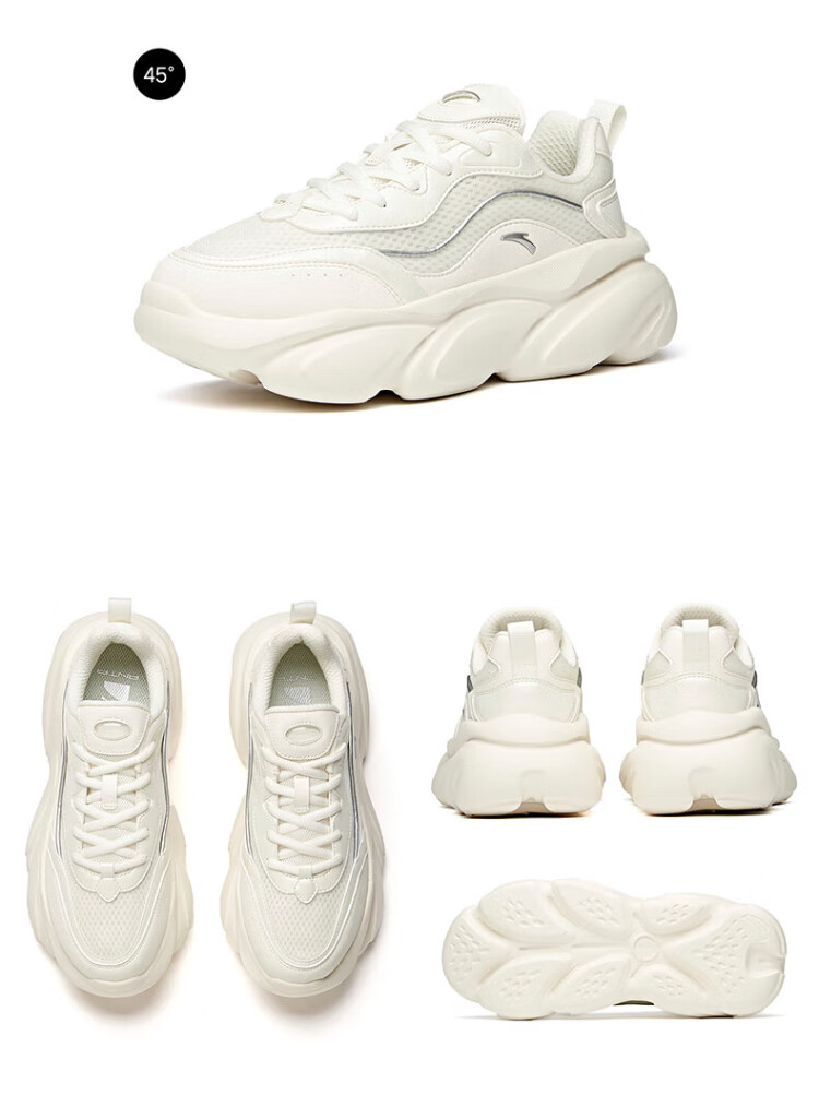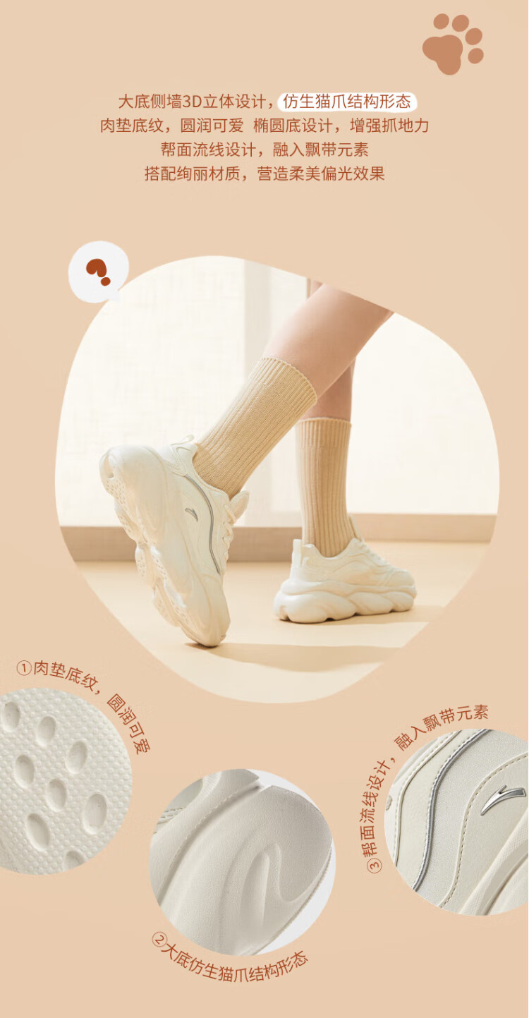 ANTA Meow Meow Shoes丨Guan Xiaotong's same style dad shoes women's shoes autumn and winter leather thick sole increased sports and leisure white shoes