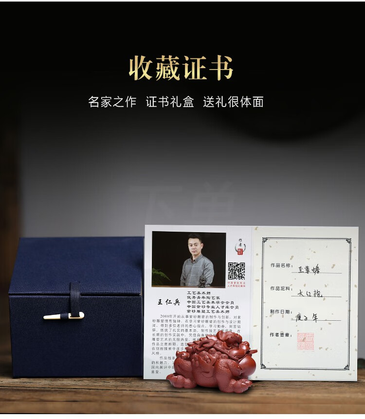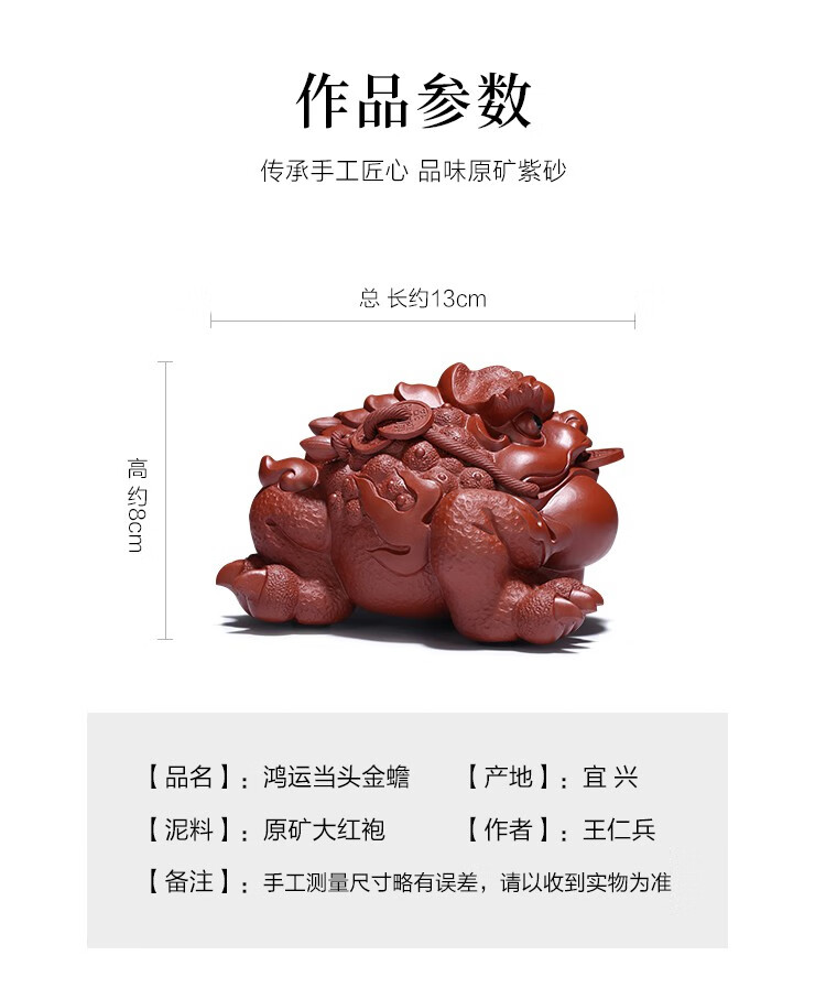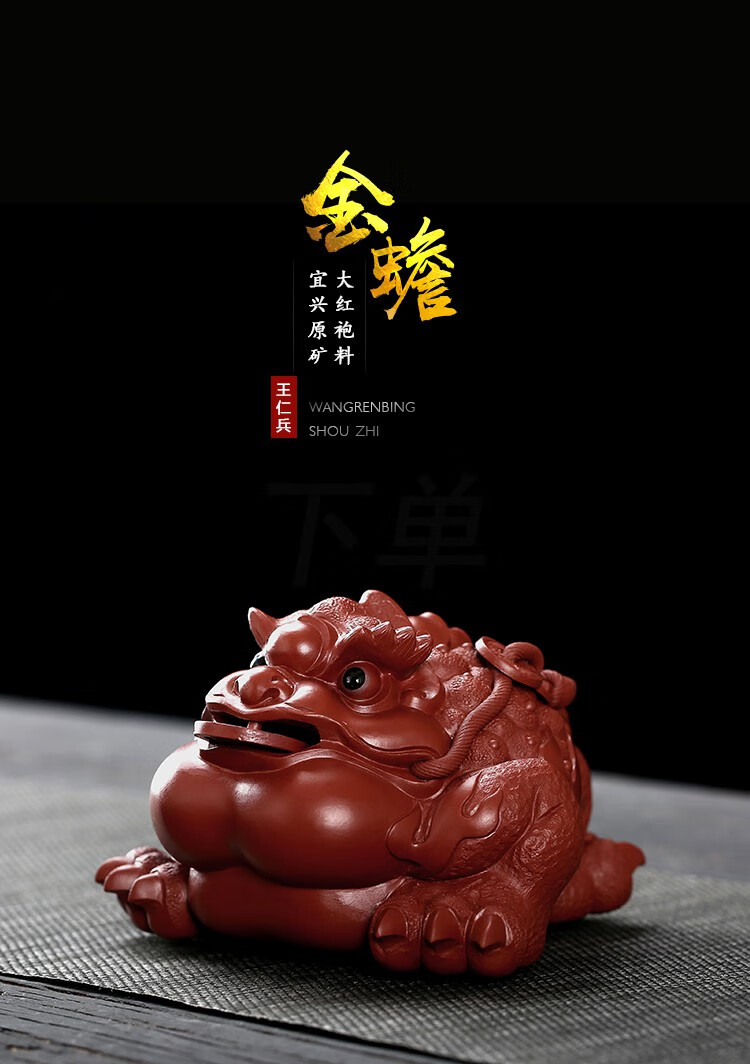 Gold inlaid jade teacher Wang Renbing handmade Yixing purple sand tea pet golden toad ornaments tea play kung fu tea set accessories gift box set good luck big red robe golden toad