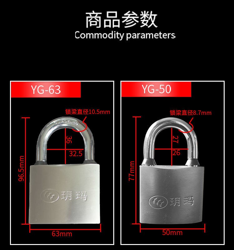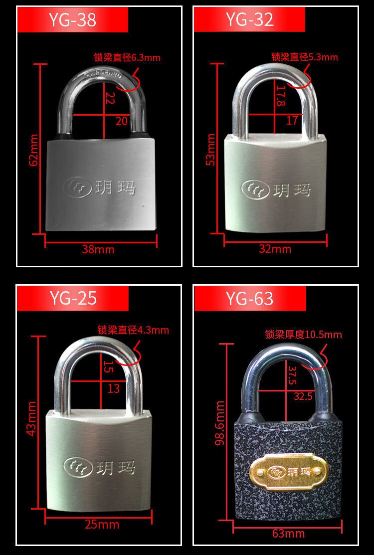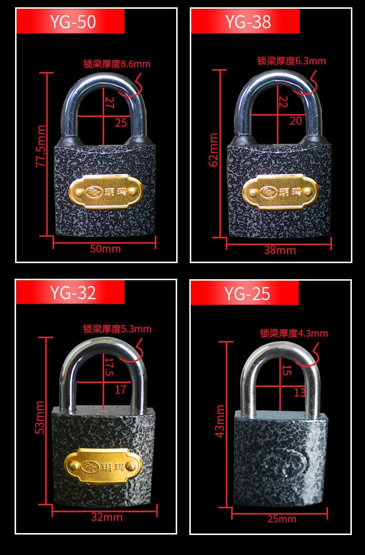 Yuema small padlock, travel luggage lock, drawer lock, dormitory cabinet door lock, anti-theft window lock, water and electricity meter box lock, YG-25mm-3 key