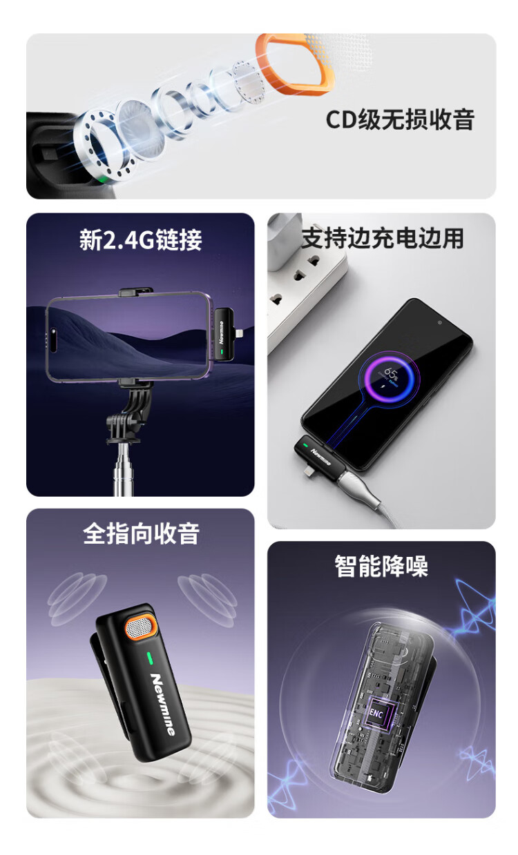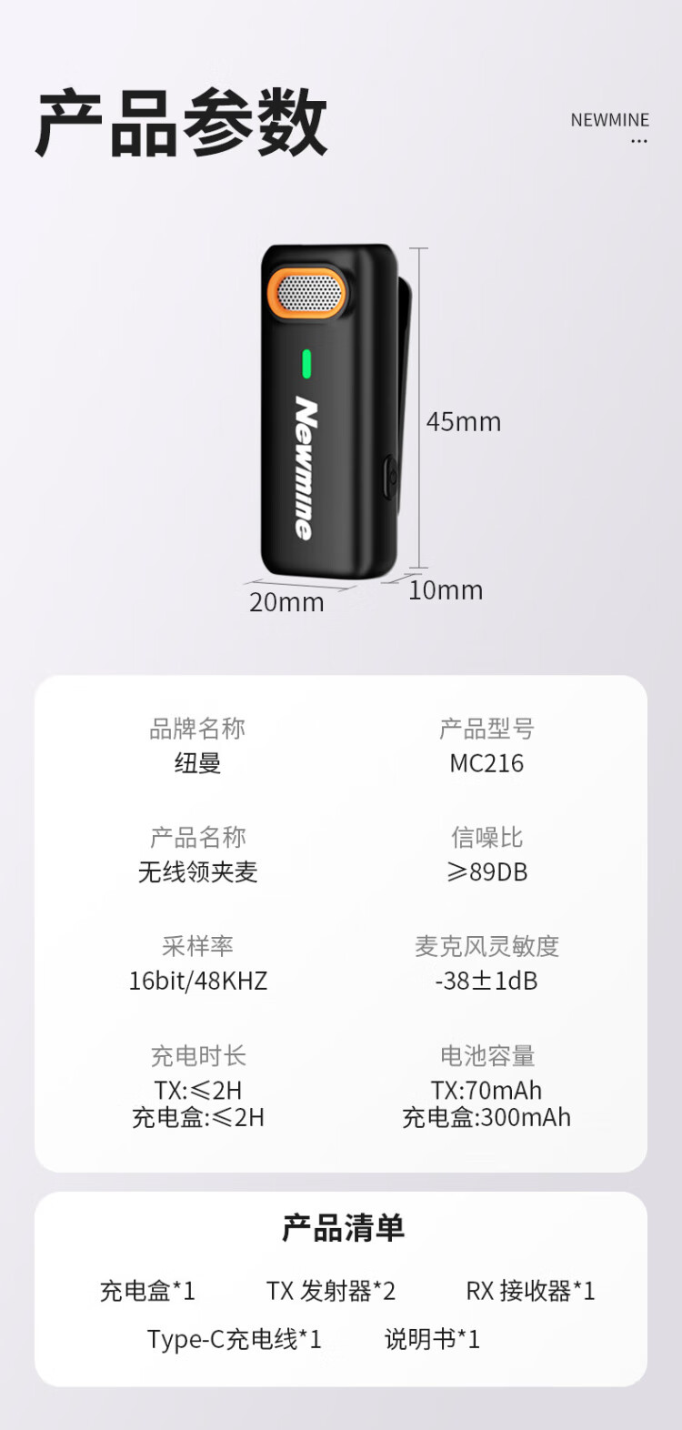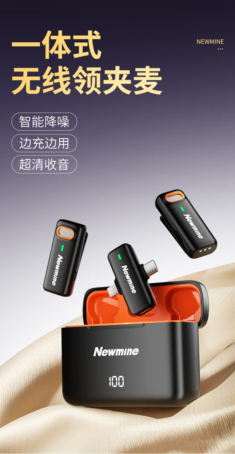 Newmine MC216 Pro wireless lavalier microphone live broadcast professional recording outdoor short video karaoke radio equipment noise reduction portable wireless microphone one-to-two charging compartment version